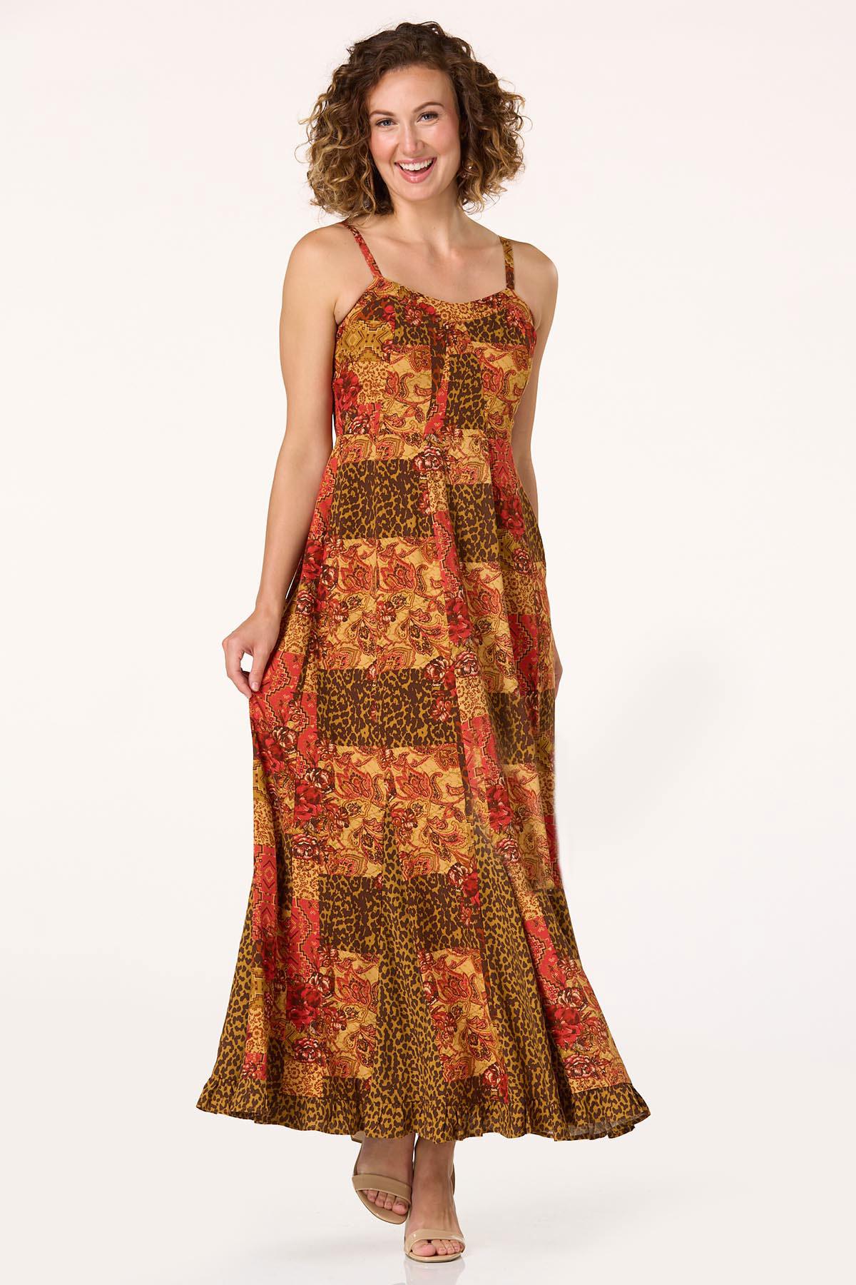 Turn heads in this animal paisley patch print maxi dress – where wild meets whimsical. With adjustable shoulder straps, side seam pockets, and a ruffle hem that sways with every step, it’s a bold style that moves with you.