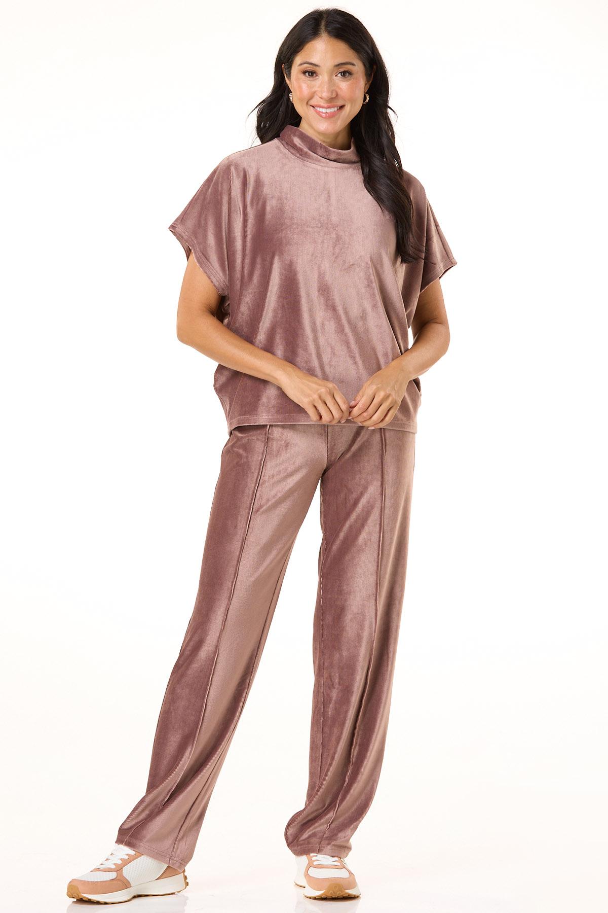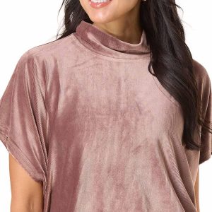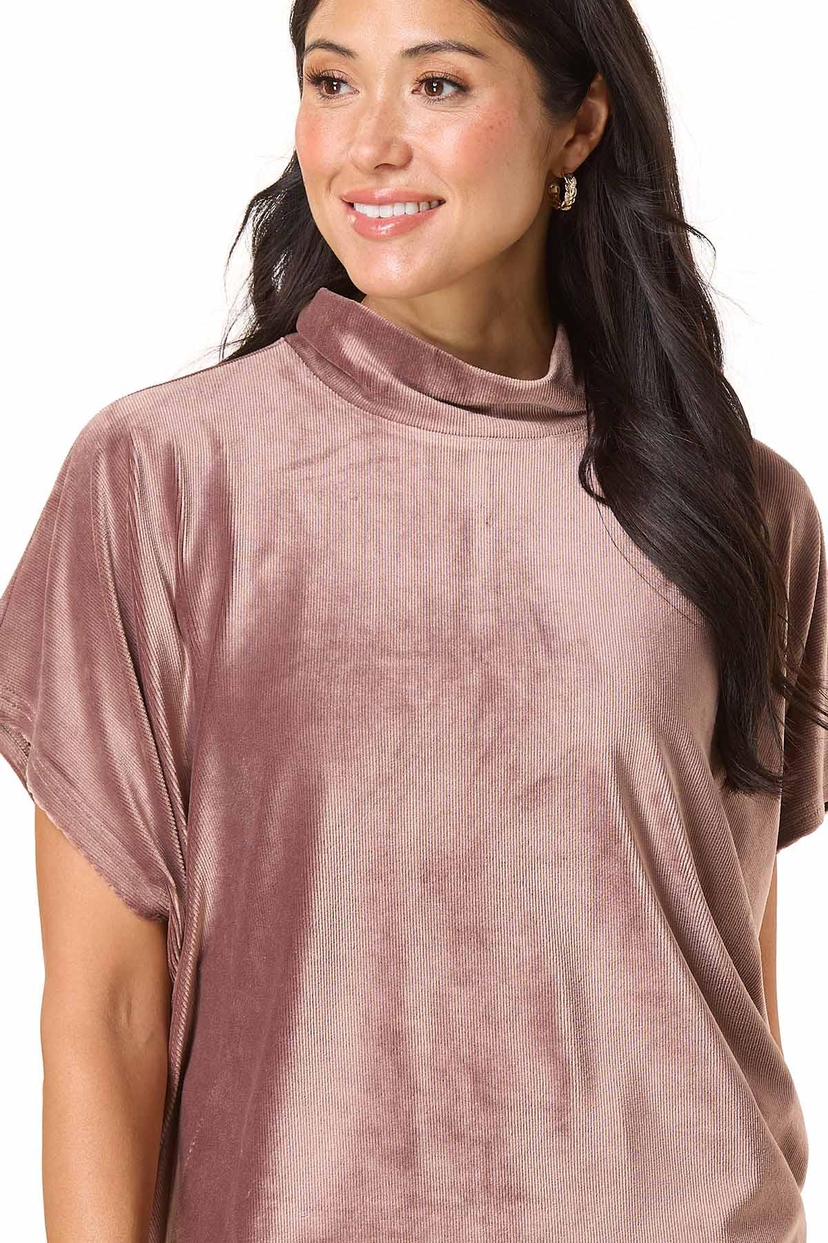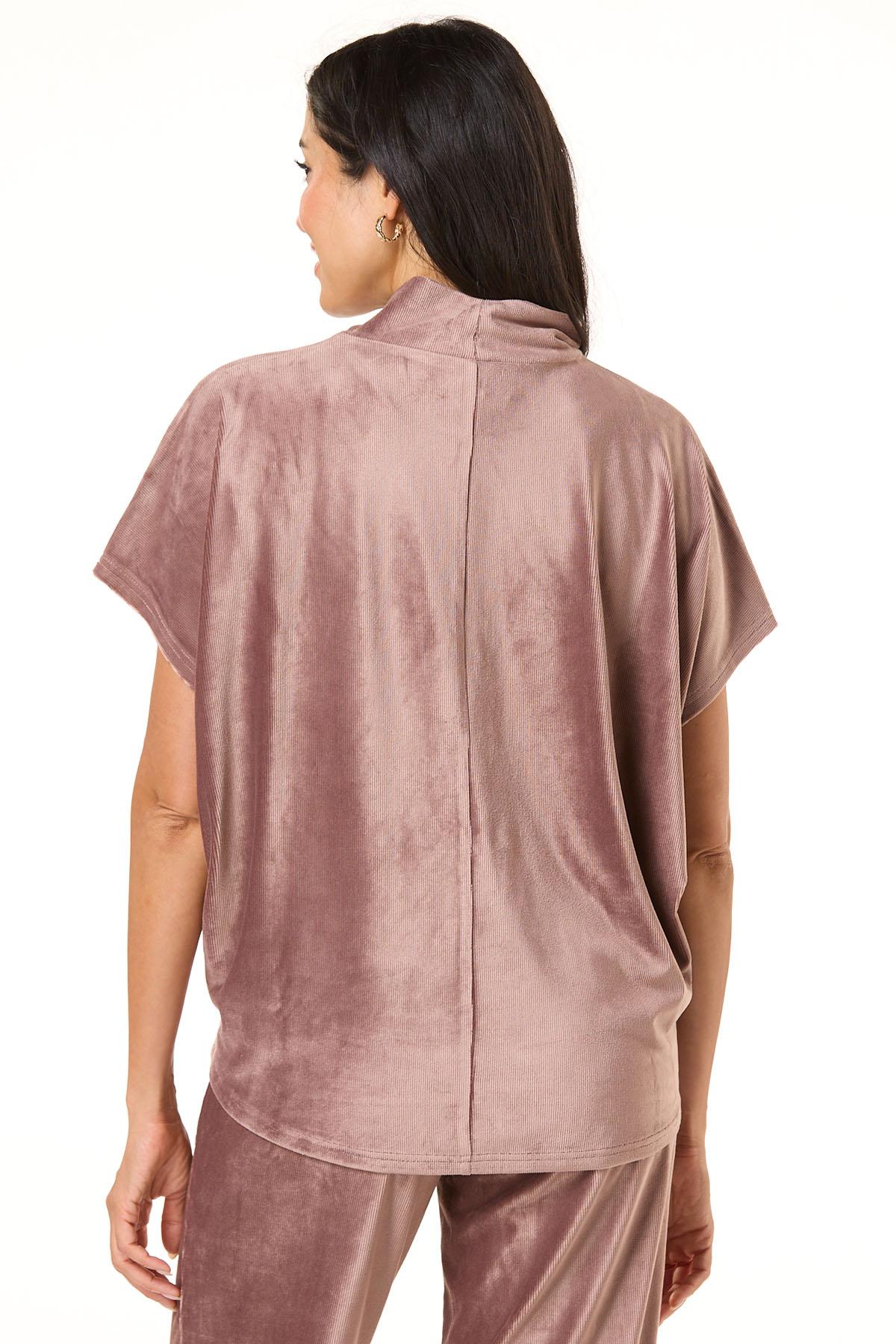 Comfy and chic go hand in hand when you choose this stretchy-ribbed style. Starting with a draped-mock neckline and continuing with a relaxed fit, berry hue, dolman sleeves and soft-velvety knit, this top is among the most-wanted when looking cute and comfort are on the agenda.