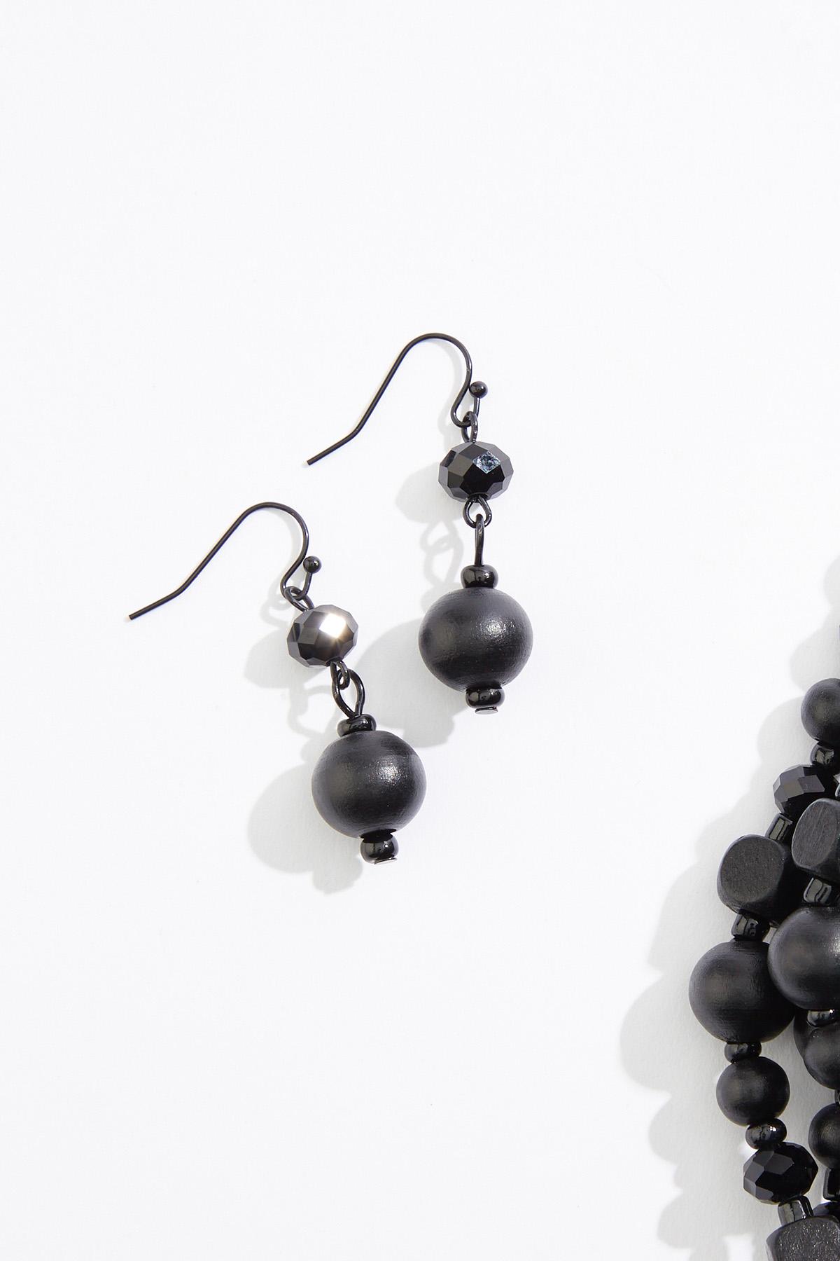 Black Wood Layered Necklace Set