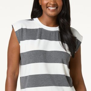 Looking cute and sporty-chic are easy-to-do with this pullover style, featuring a scoop neckline, bold-stripe print and french terry fabric for a casual and comfy finish that’s ready to take on the weekend.