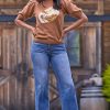 Classic meets contemporary in this brown plaid pencil skirt, crafted in a comfortable knit with a flattering pull-on waist. Faux leather piping and decorative buttons add just the right touch of polish. This skirt is your new go-to for desk to dinner and everything in between.