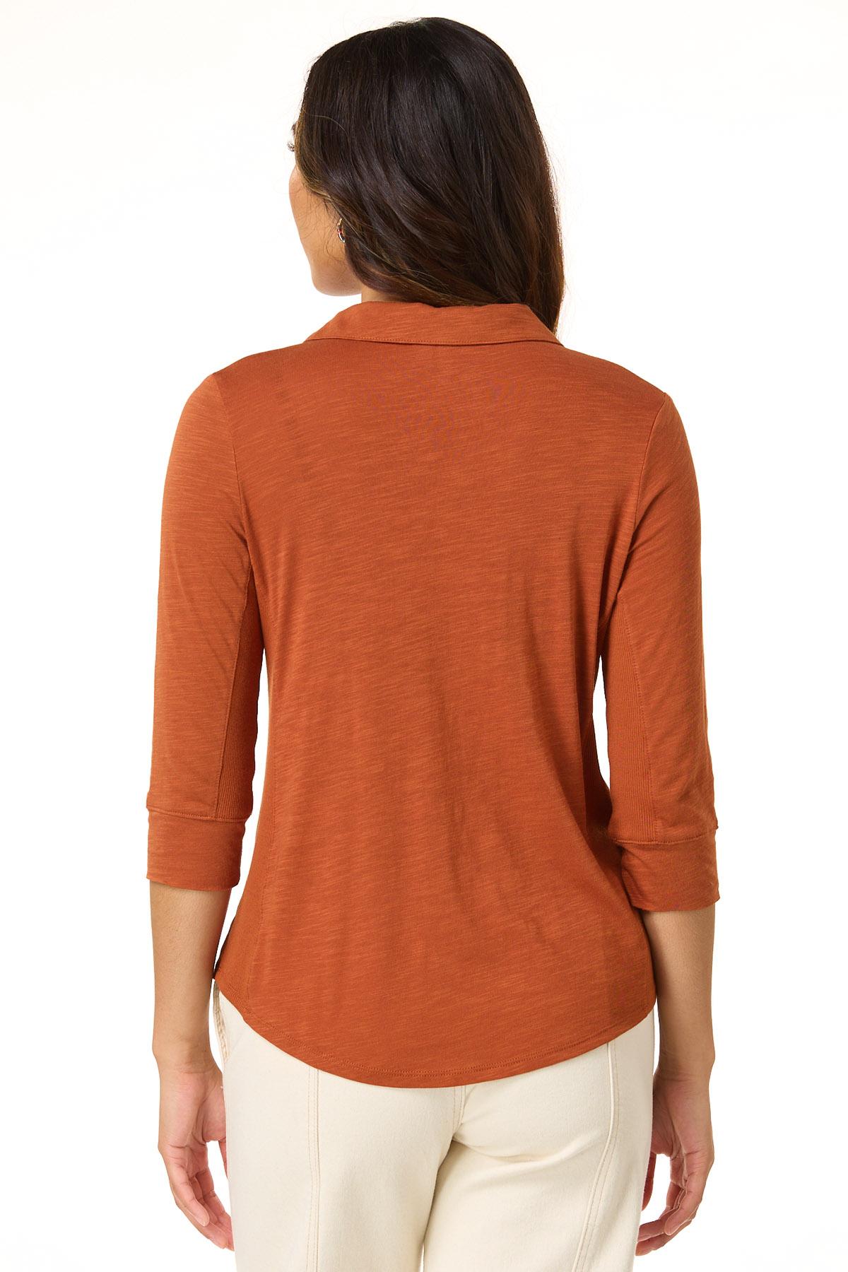 When a casual and chic look is the vibe you’re going for, you can count on this button down style with double-front pockets, a classic-collared neckline, button down front and ribbed panels for a contrasting finish.