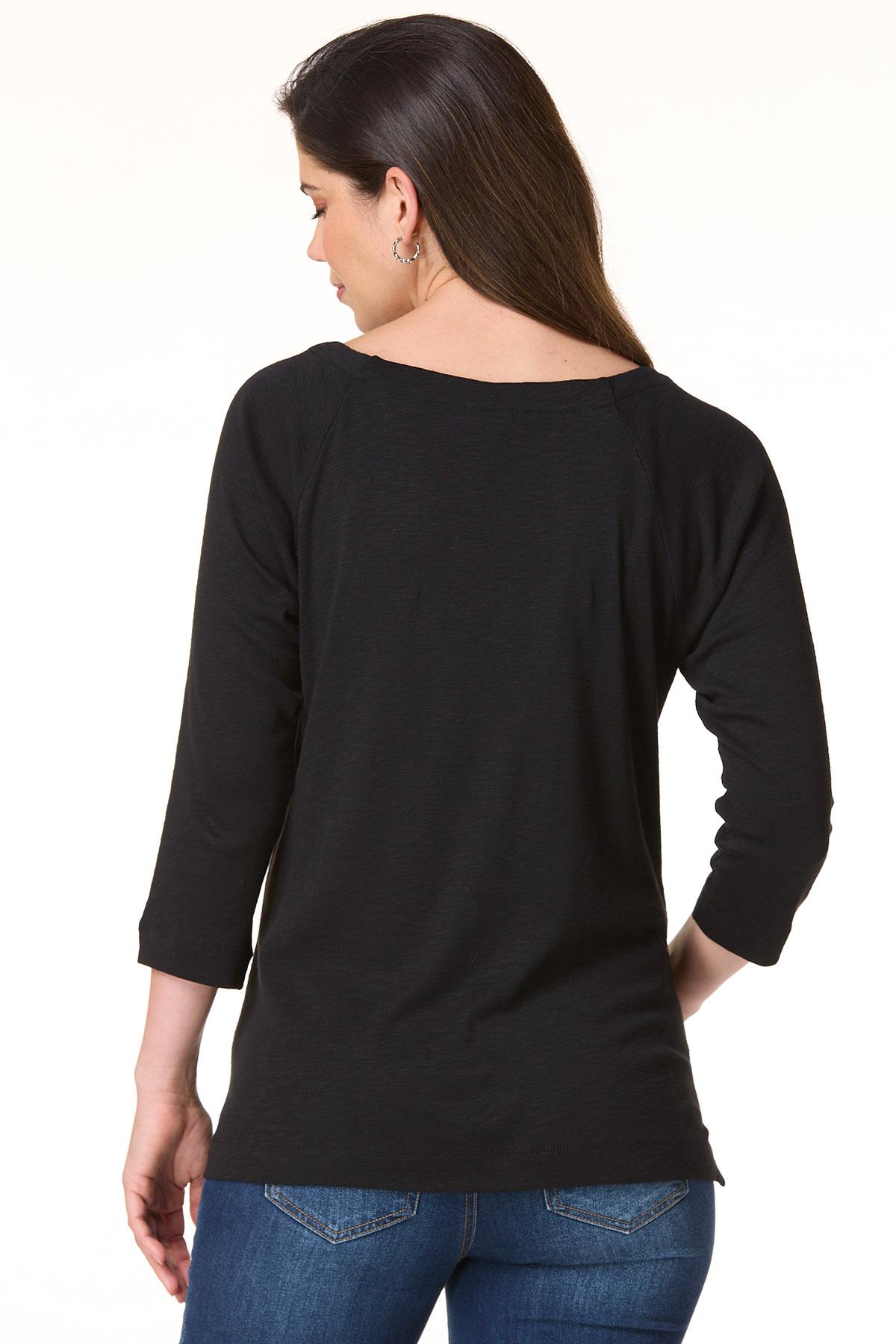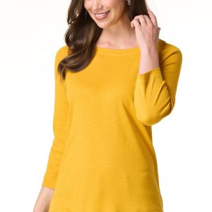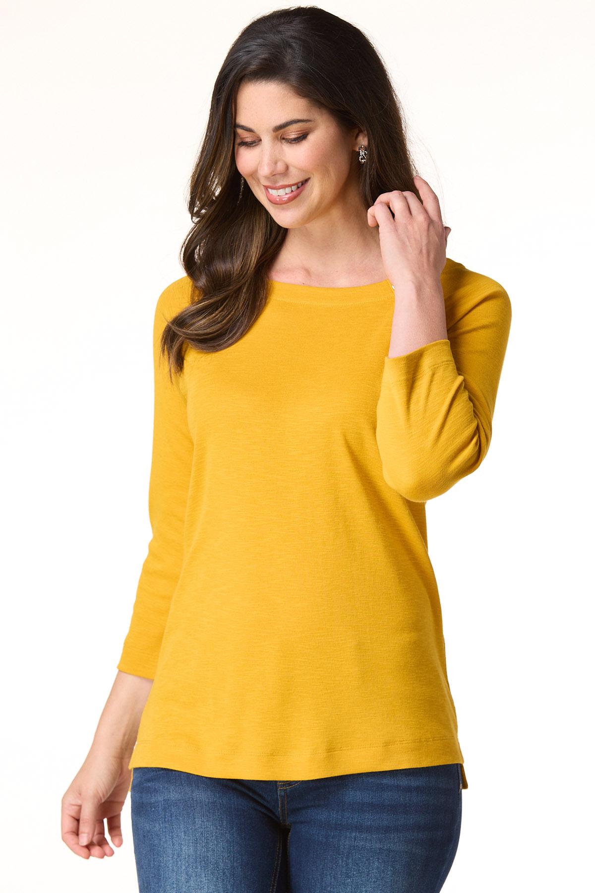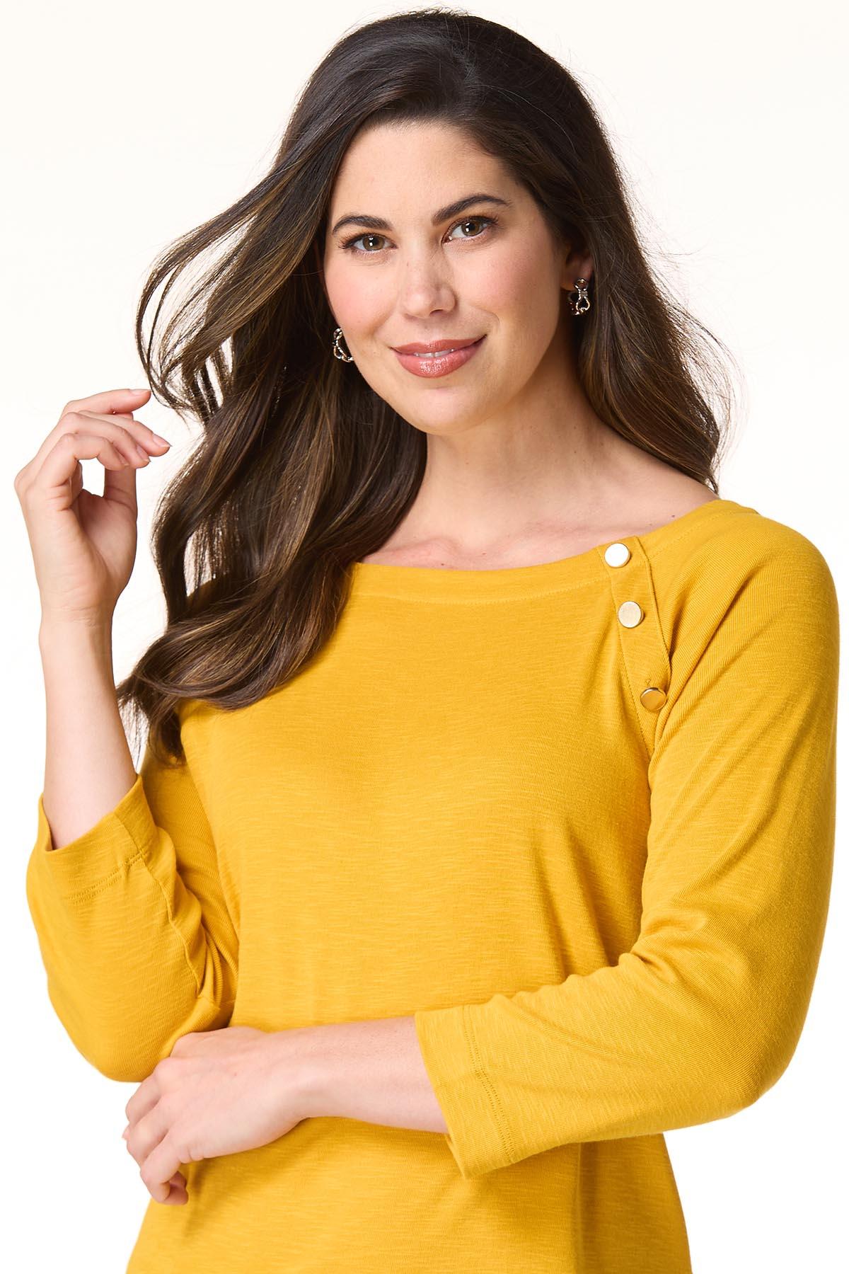 Whether plans include cubicle conversations or lunch dates with friends, you’ll be fitting right in to whatever the day has to offer with this pullover style, featuring a boat neckline, shiny-button detail and a soft feel topping a relaxed fit.