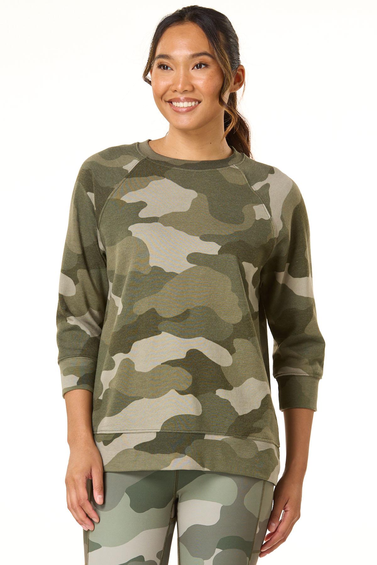 You’ll love getting comfy and showing up for low-key times in this cute camo style, featuring a scoop neckline, french terry fabric, relaxed fit and side slit hem.