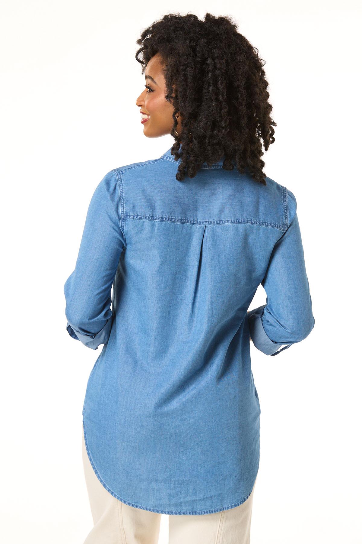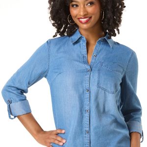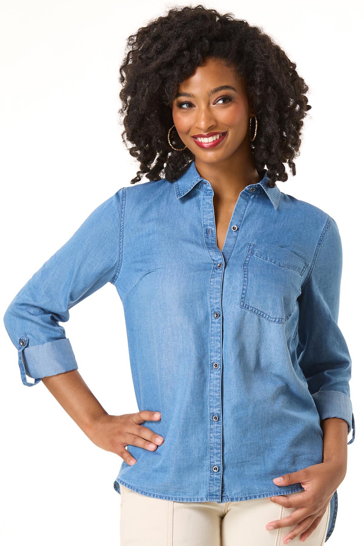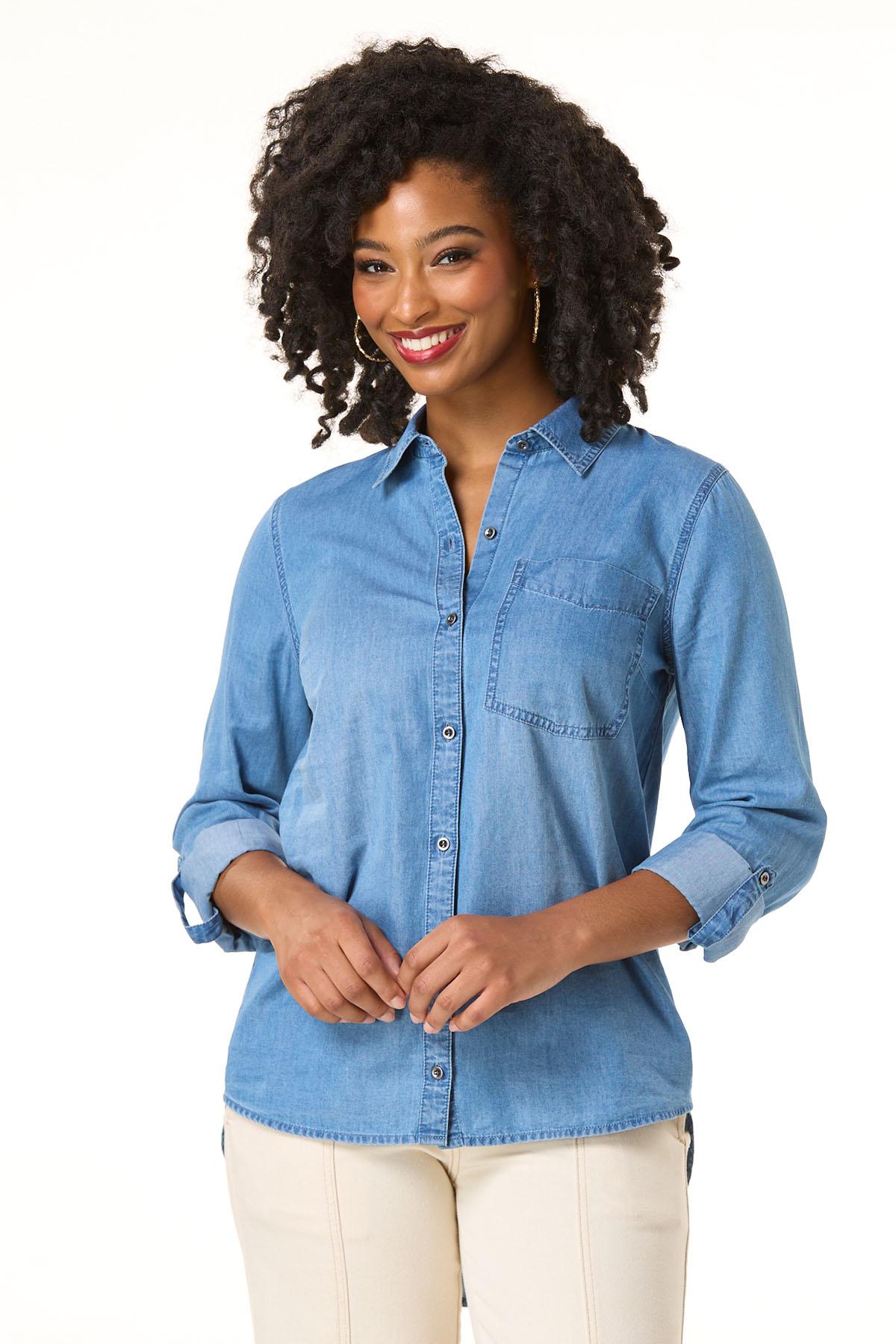 Lend a lighter look to denim days with this classic style. A collared, button down silhouette, faded-blue hue and cool-chambray fabric are the reasons this one is about to be worn on repeat all season long.