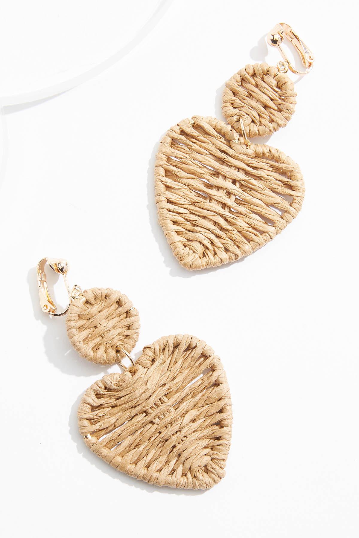 Clip- On Raffia Heart Dangly Earrings