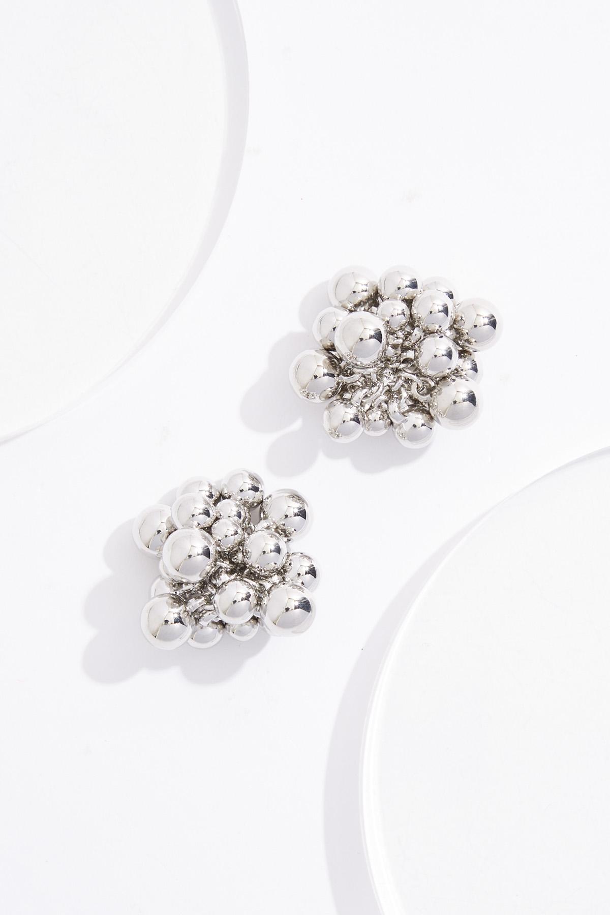 Clip- On Silver Cluster Button Earrings