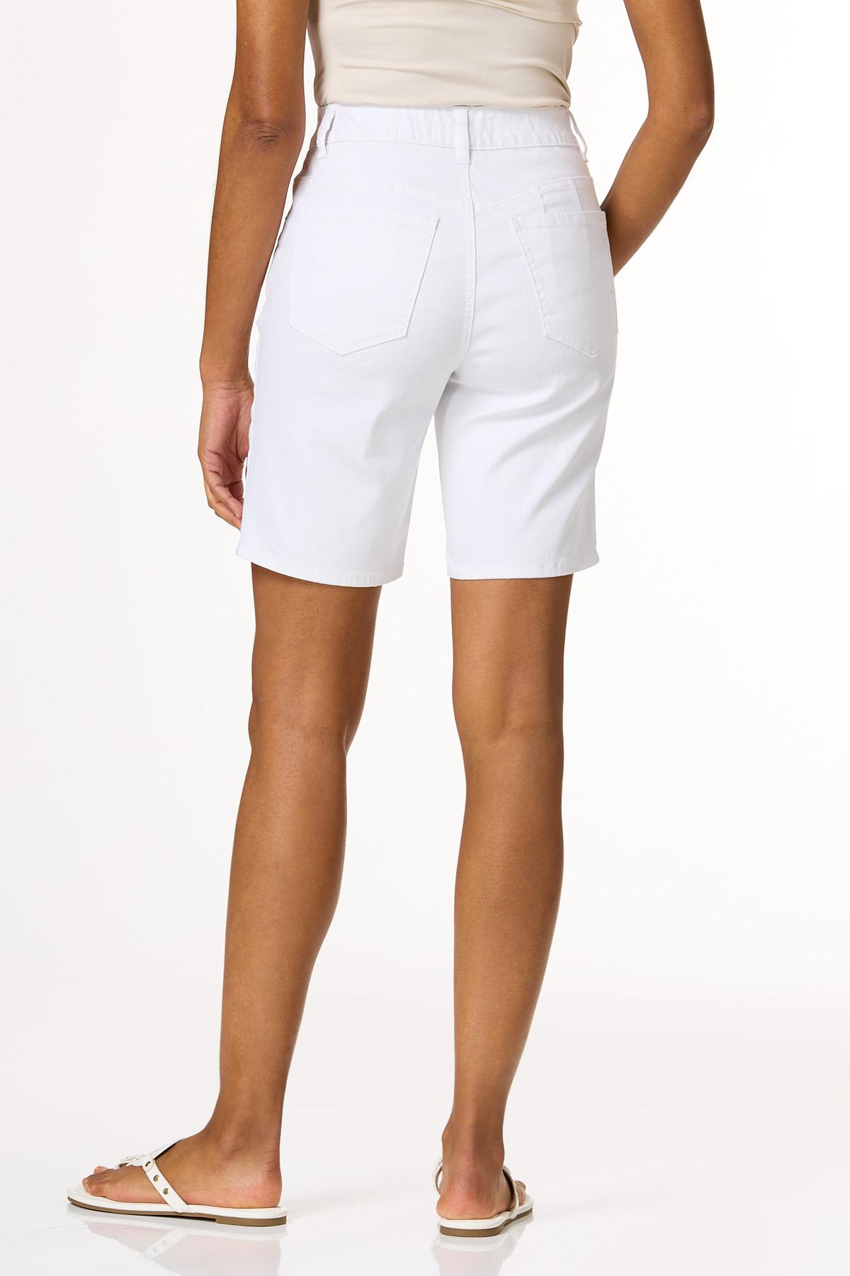Cue confident, summertime style with the flattering fit of these white shorts, featuring a comfortable-stretch and curve-friendly fit that will have you walking on sunshine all season long.