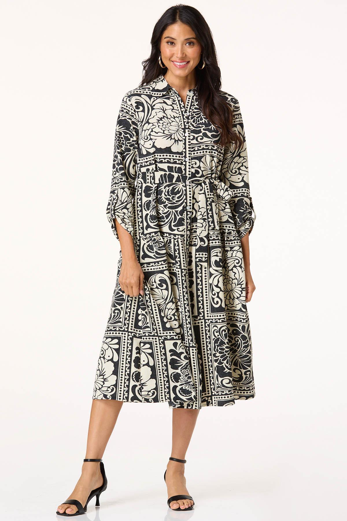 Contrast Floral Patchwork Midi Dress