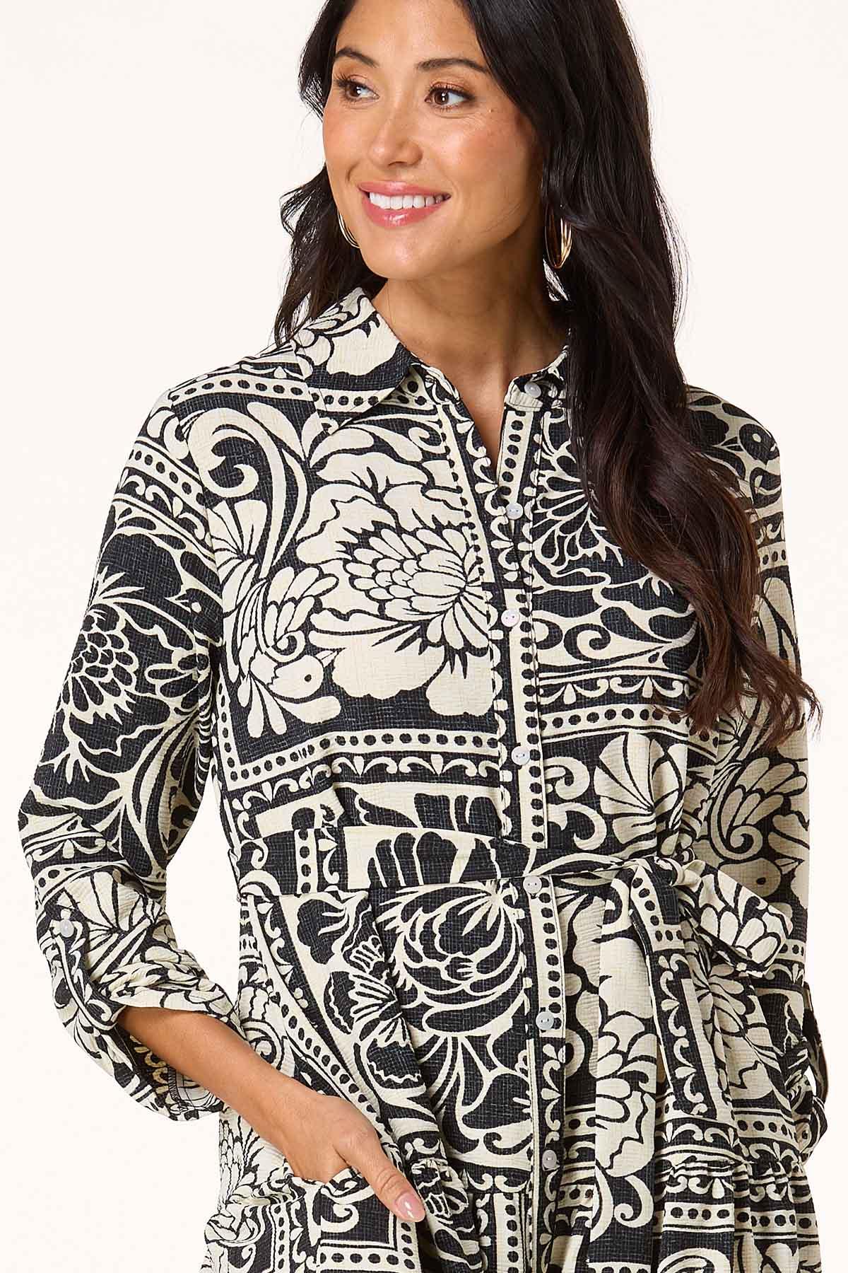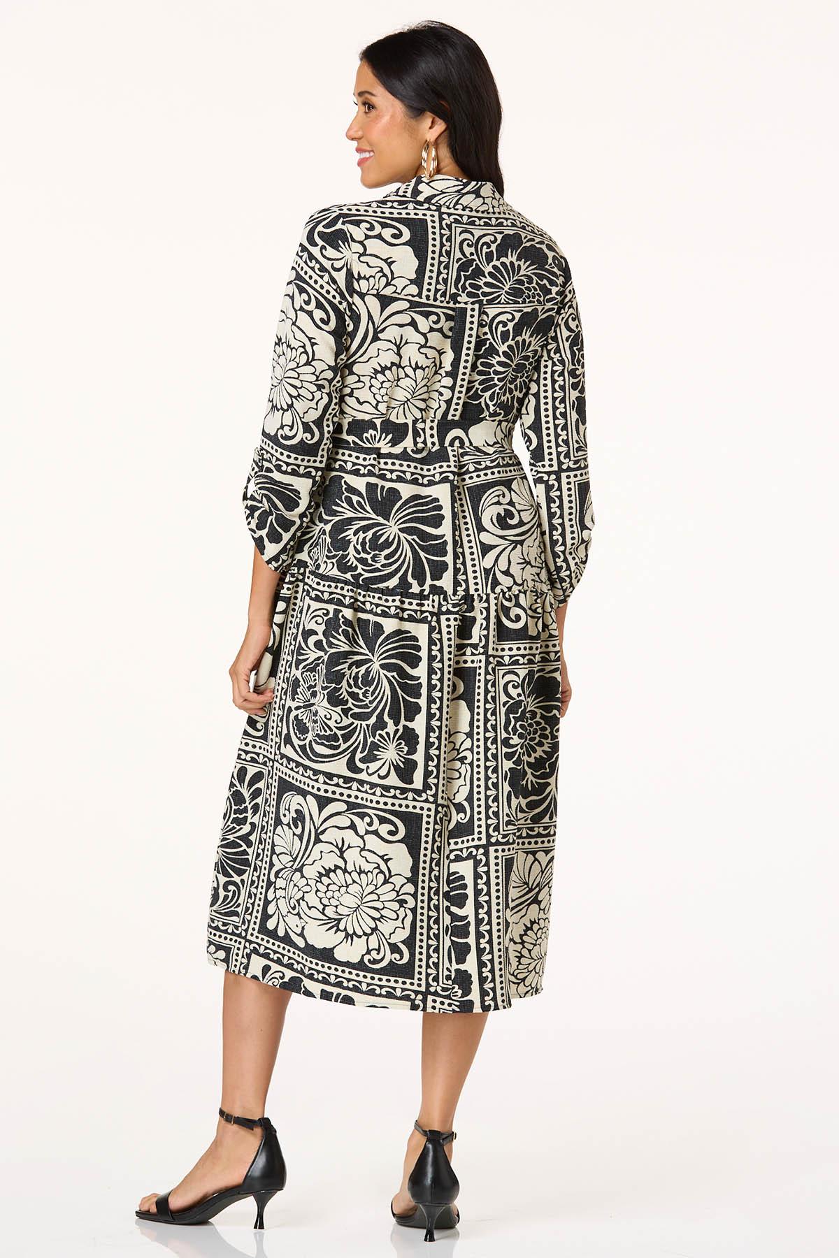 Contrast Floral Patchwork Midi Dress