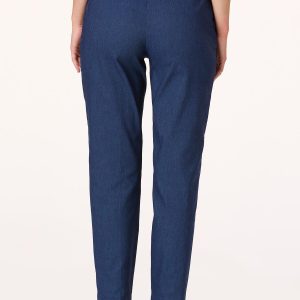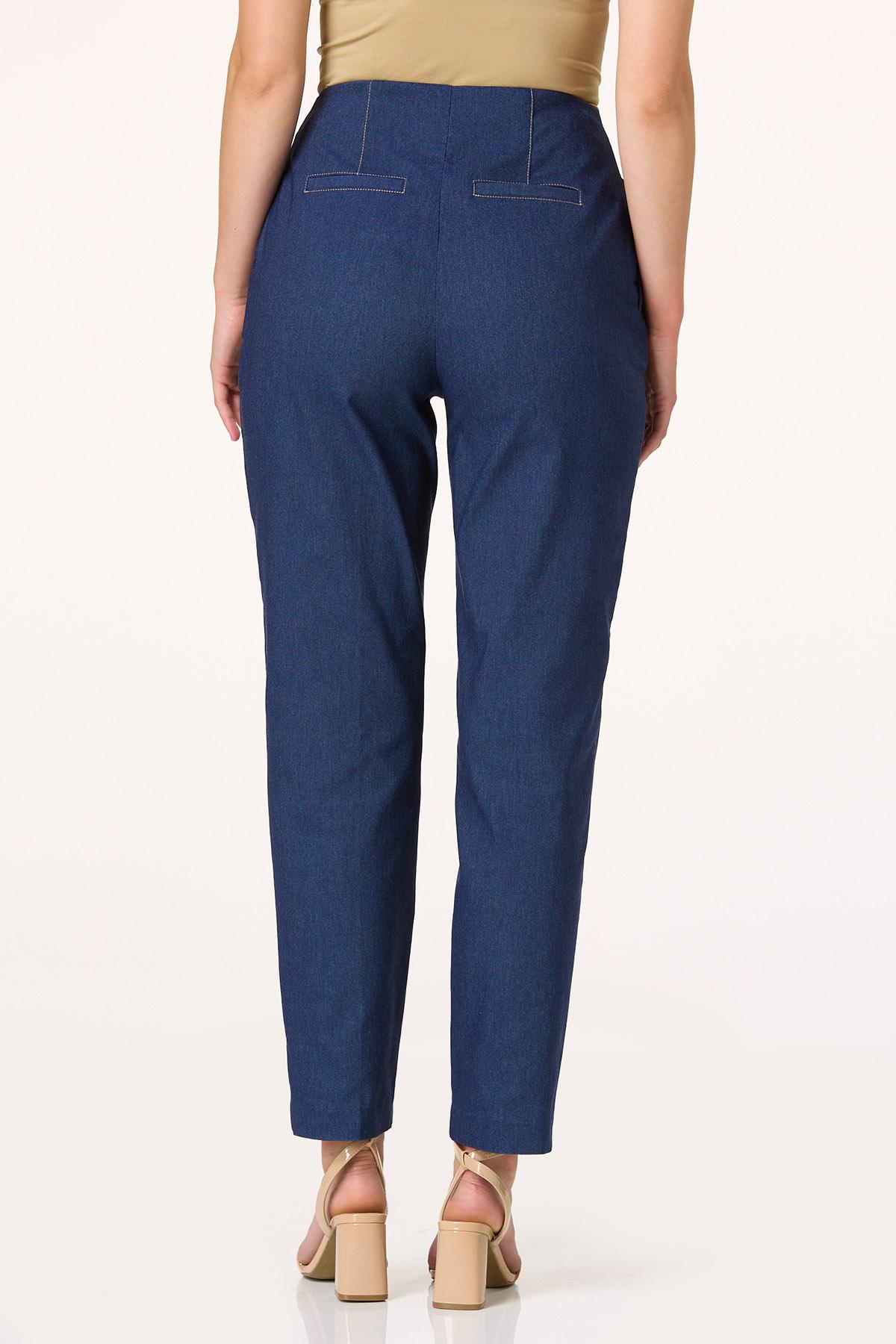 Dressy denim is always a great choice for work, brunch or beyond. This stretchy denim style features a medium-wash hue, high-rise waist, darted details, side pockets, a contrast-stitch trim and classic, straight-leg silhouette. Wear with our matching denim vest for a chic, head-to-toe look that will get you endless compliments.
