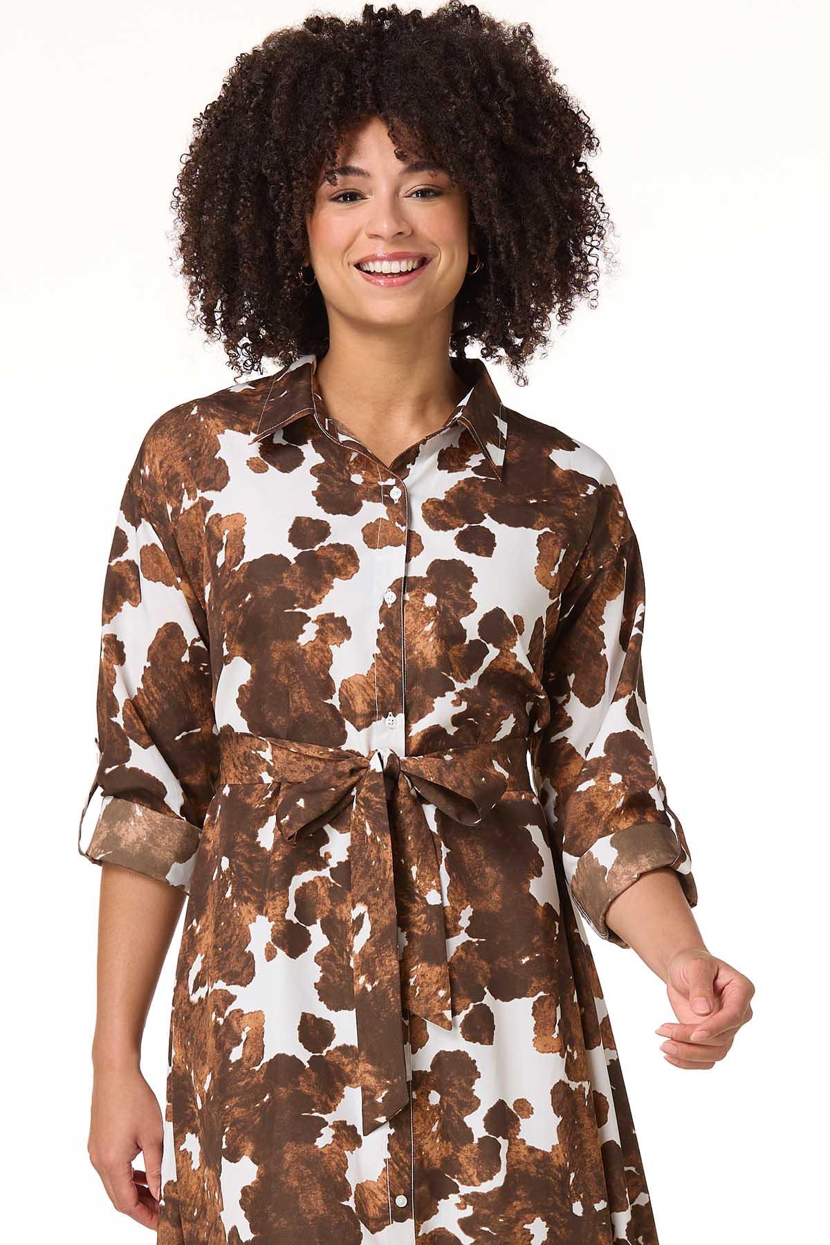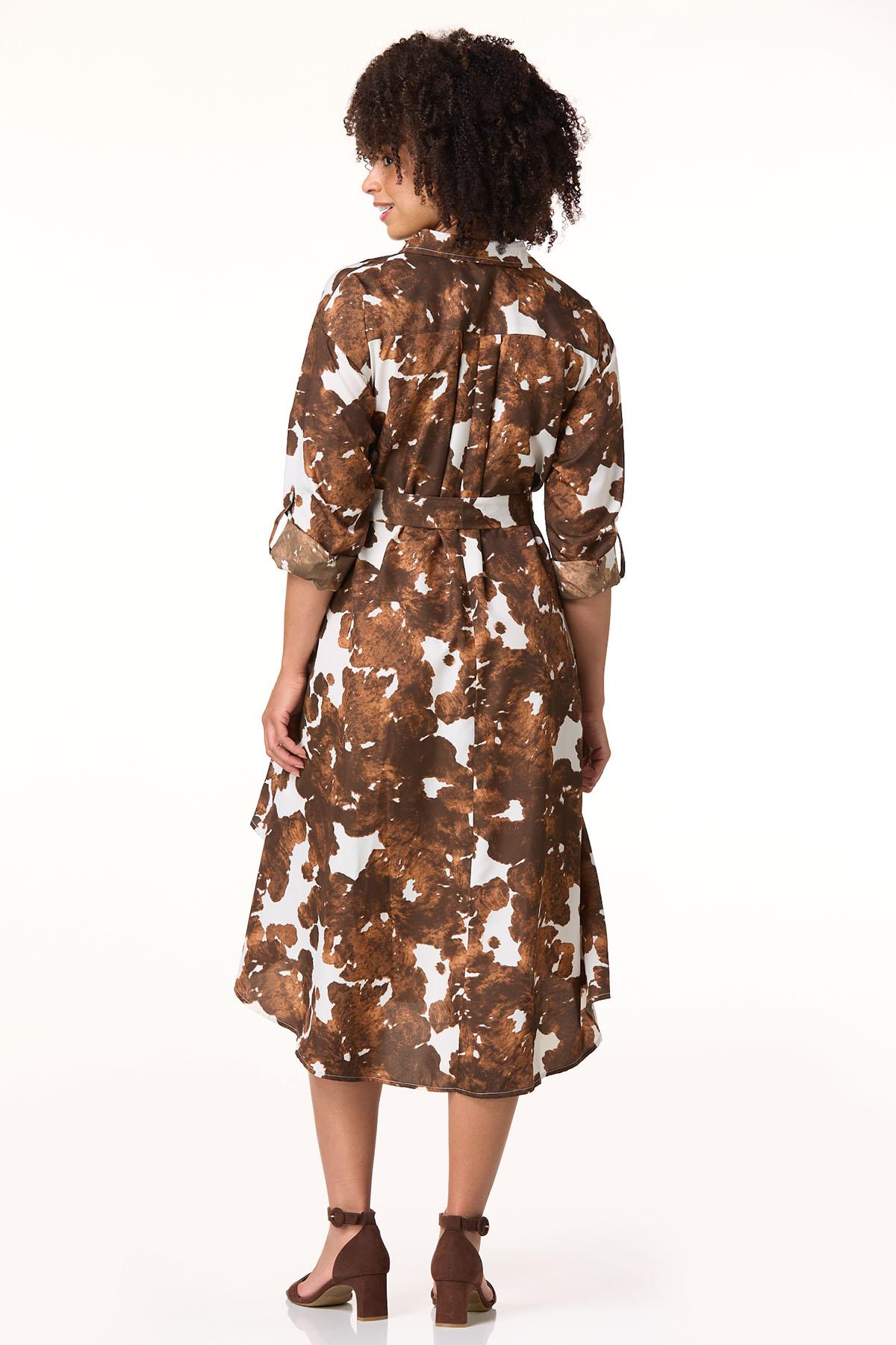 This lightweight cow print shirt dress brings a playful edge to your style. The high-low hem adds movement, while the removable tie belt lets you cinch the waist for a flattering, personalized fit. Whether you’re styling it with boots or sandals, this standout piece is ready to roam wherever the day takes you.