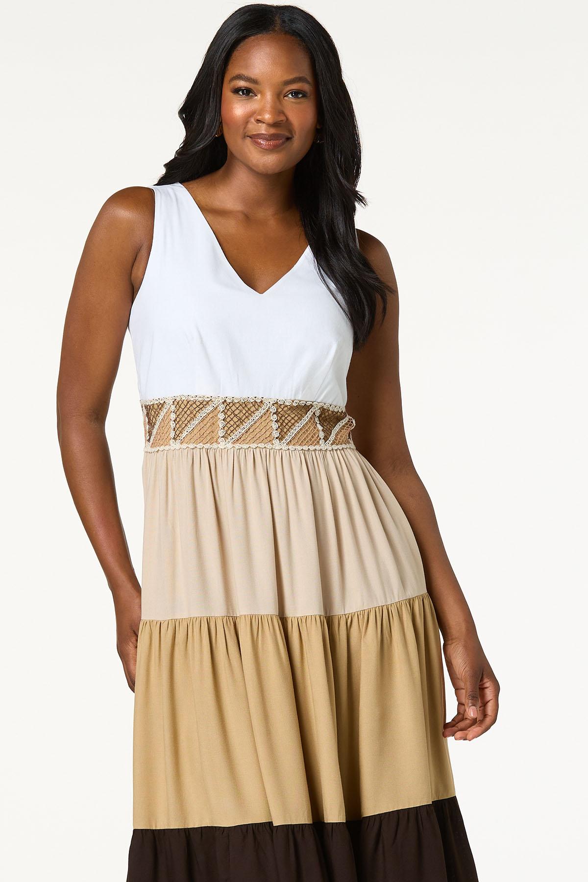 From summer vacations to dinner with your favorites, you’ll love making this sweet style a part of your plans. A v-neckline, colorblock design, crochet inset, shades of beige and side pockets are the darling details that will leave you smitten with this one.
