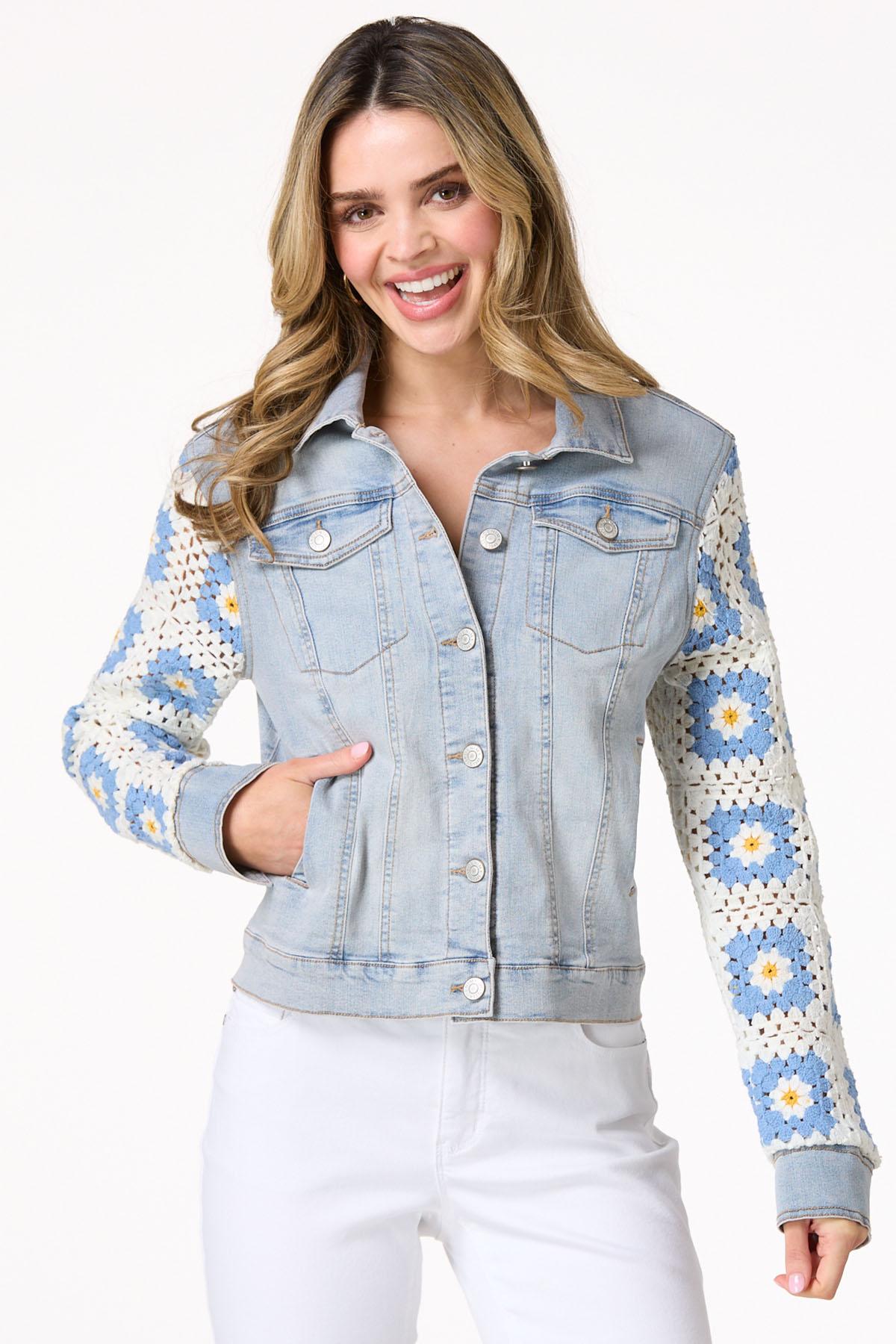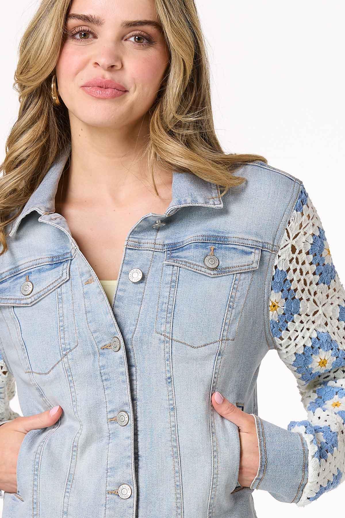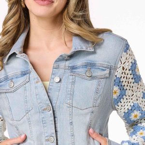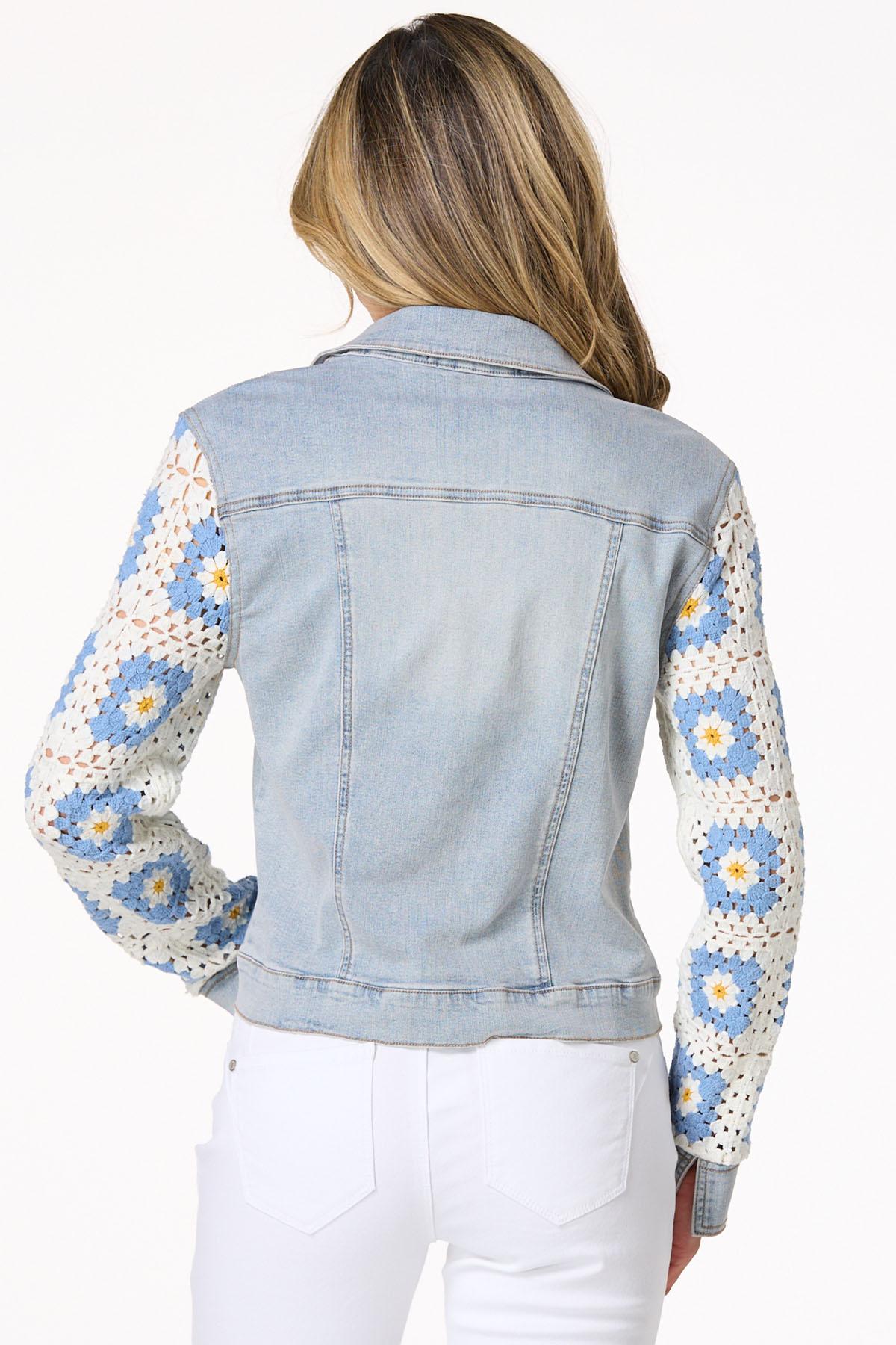 Elevate your denim game with a touch of boho charm. Stunning crochet sleeves add a unique, handmade feel, while the light wash denim pairs effortlessly with everything from casual tees to flowy dresses, making it a versatile layer for every season. Whether you’re layering it for warmth or styling it for a statement, this jacket is as timeless as it is trendy.
