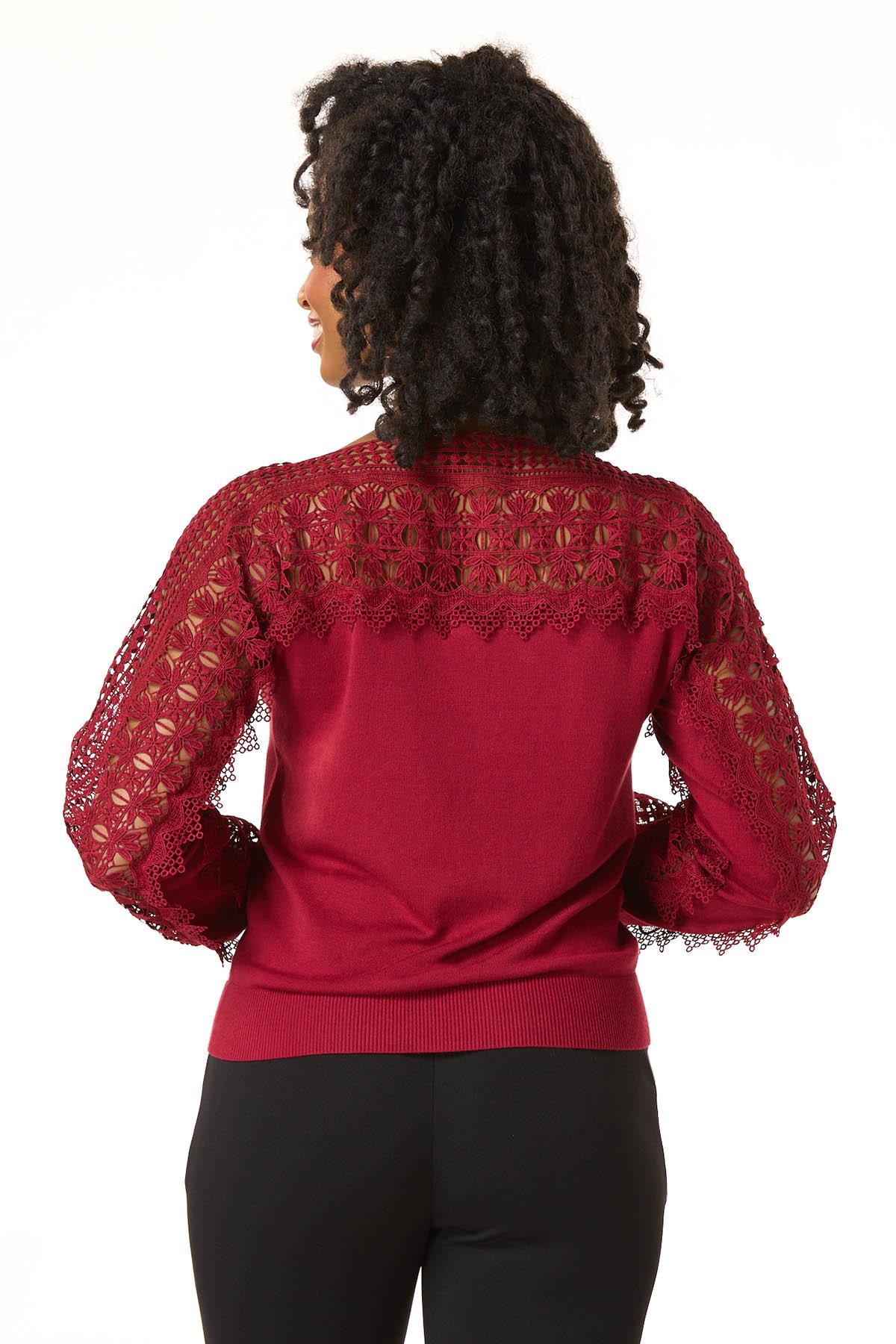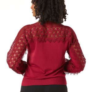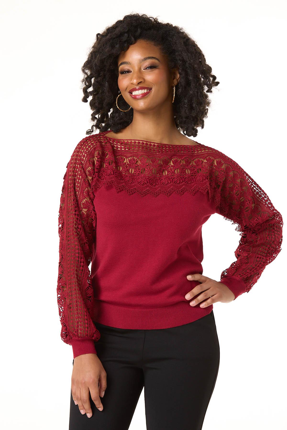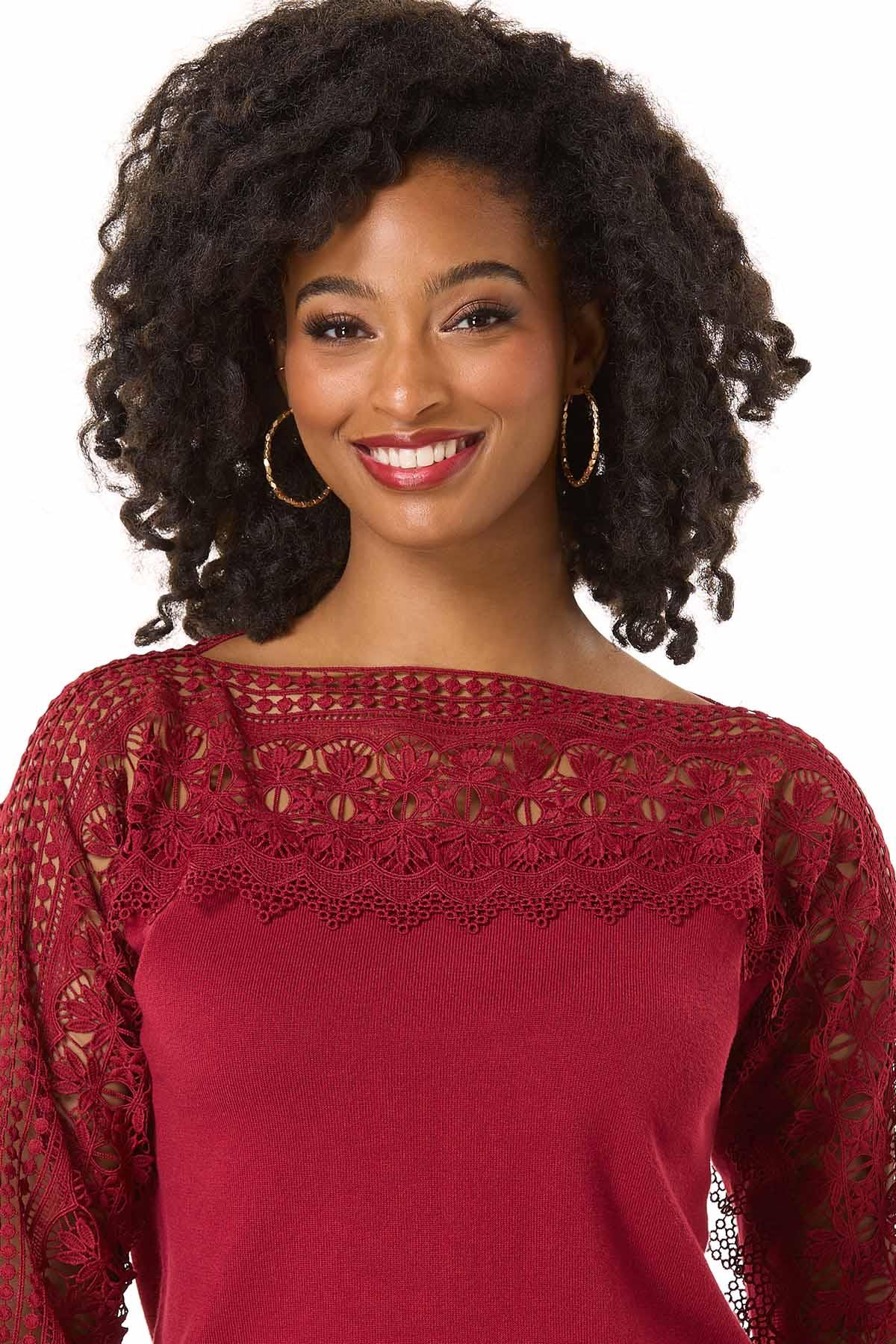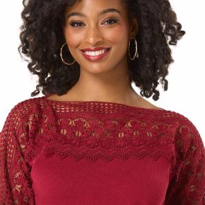 Find yourself swooning over the delicate-crochet trim of this limited edition style, featuring a scoop neckline, relaxed fit and rich-red hue for a look that’s easy to fall in love with time and time again.
