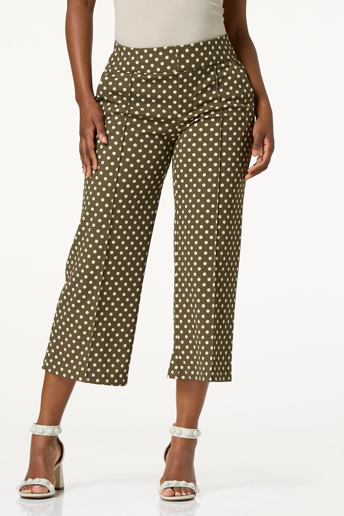 Be spotted looking amazing with this cropped look, featuring a stretch knit, polka dot print and an olive and ivory color palette for an earthy finish that can be dressed up or down for work hours, after and anytime in-between.