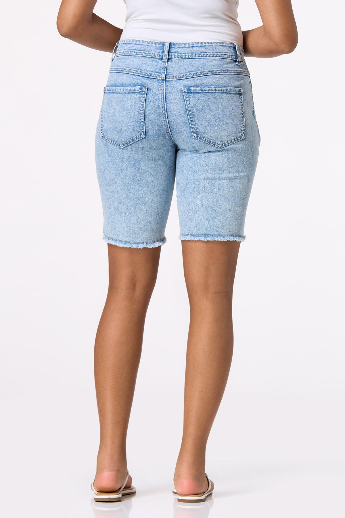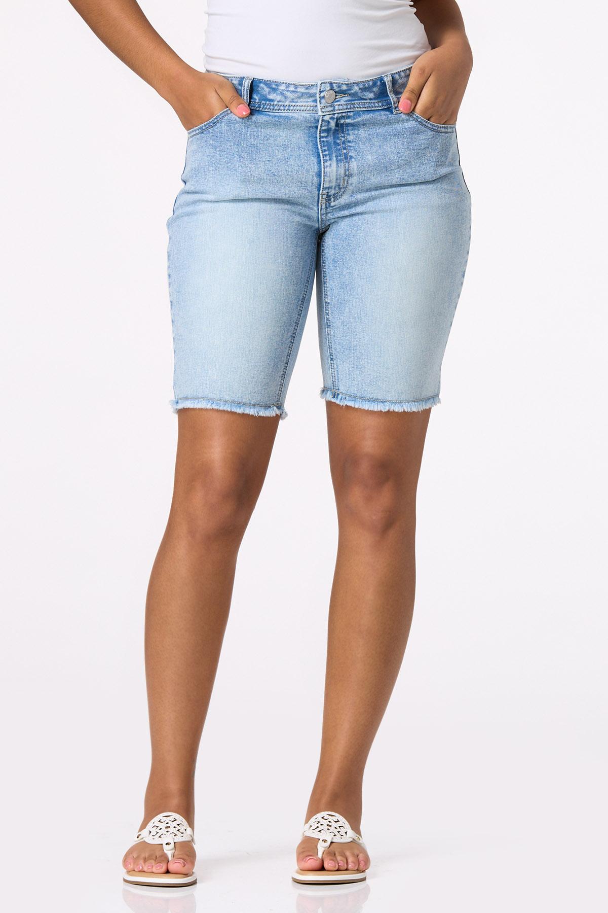 Bring a cool-retro vibe to your day with these acid wash jeans, featuring a button front closure, frayed hem and a shape enhancing design for a fabulous curve-friendly fit.