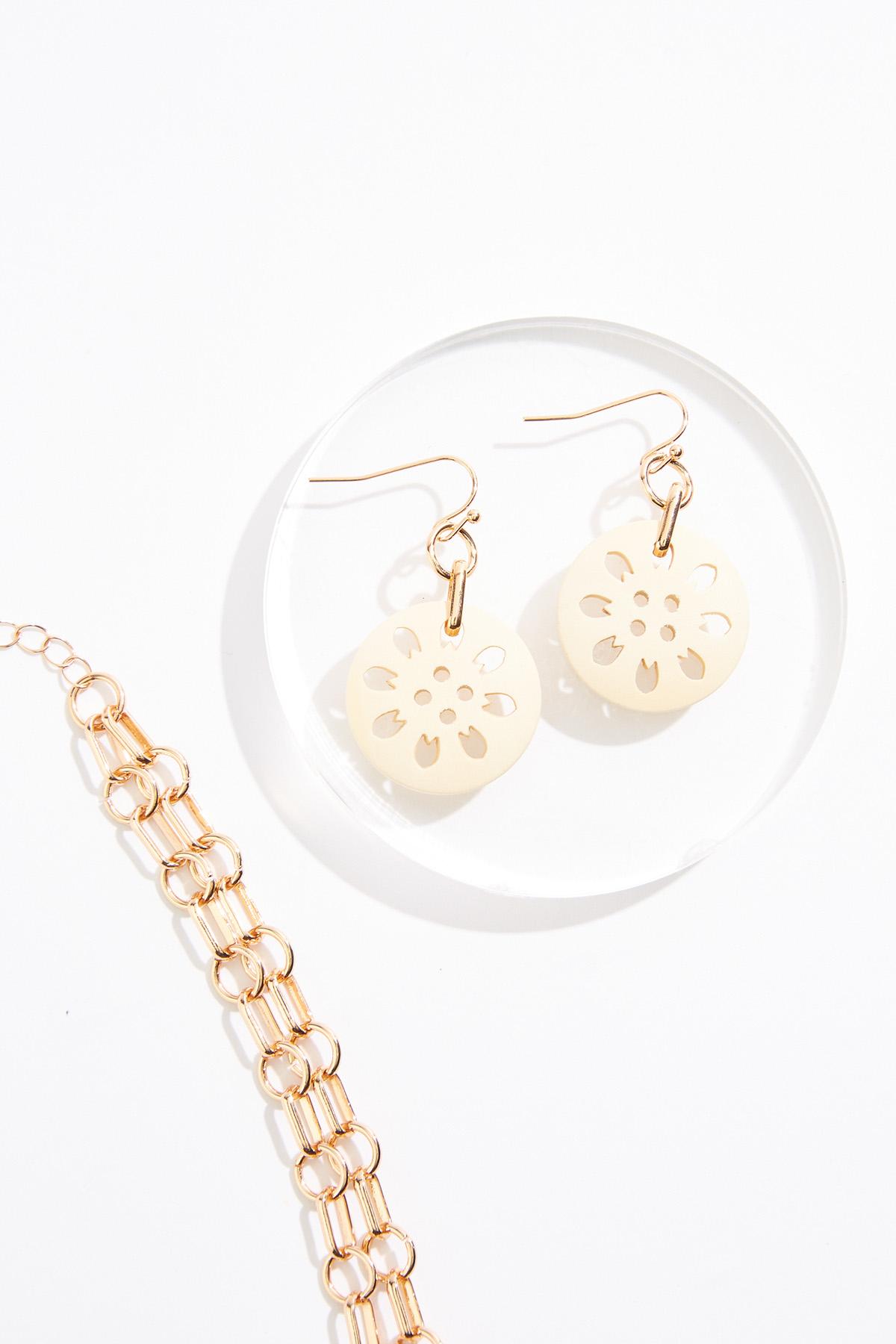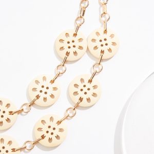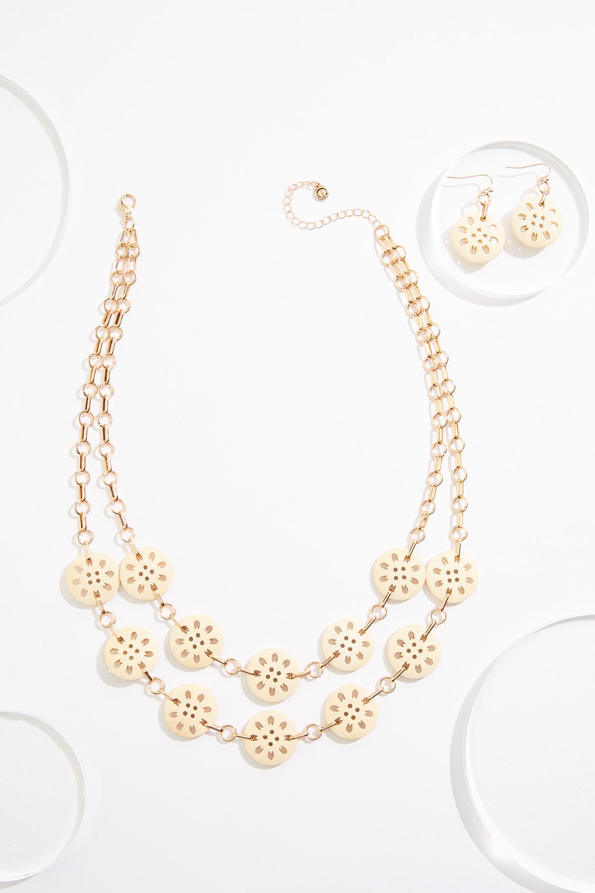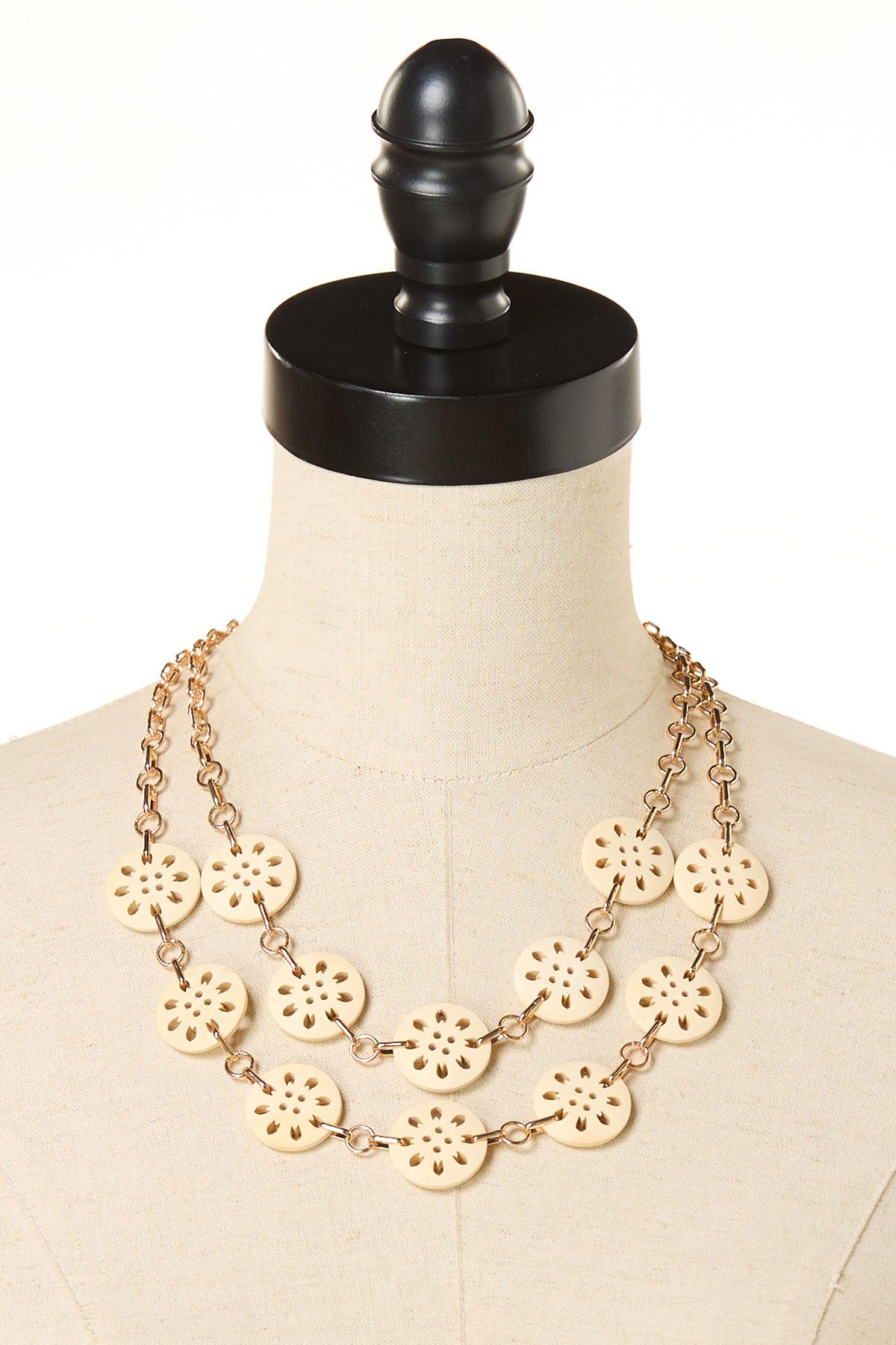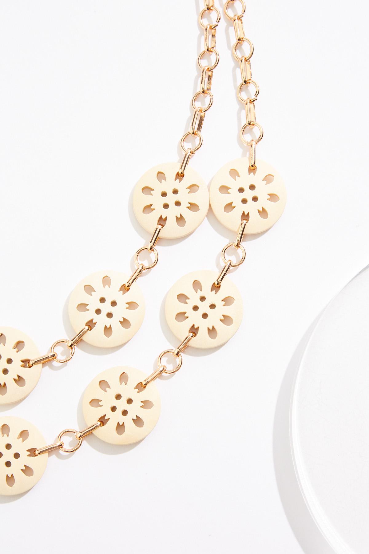 Cutout Wood Disc Layered Necklace Set