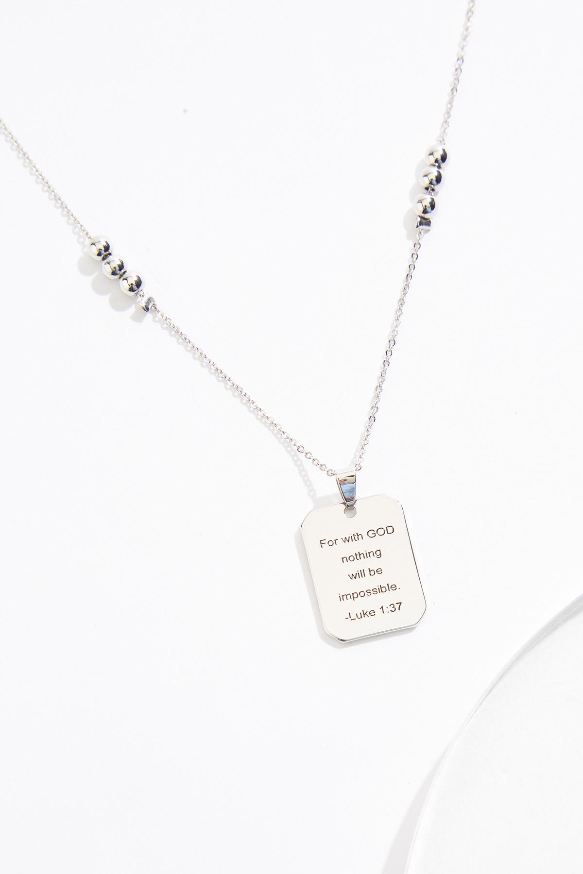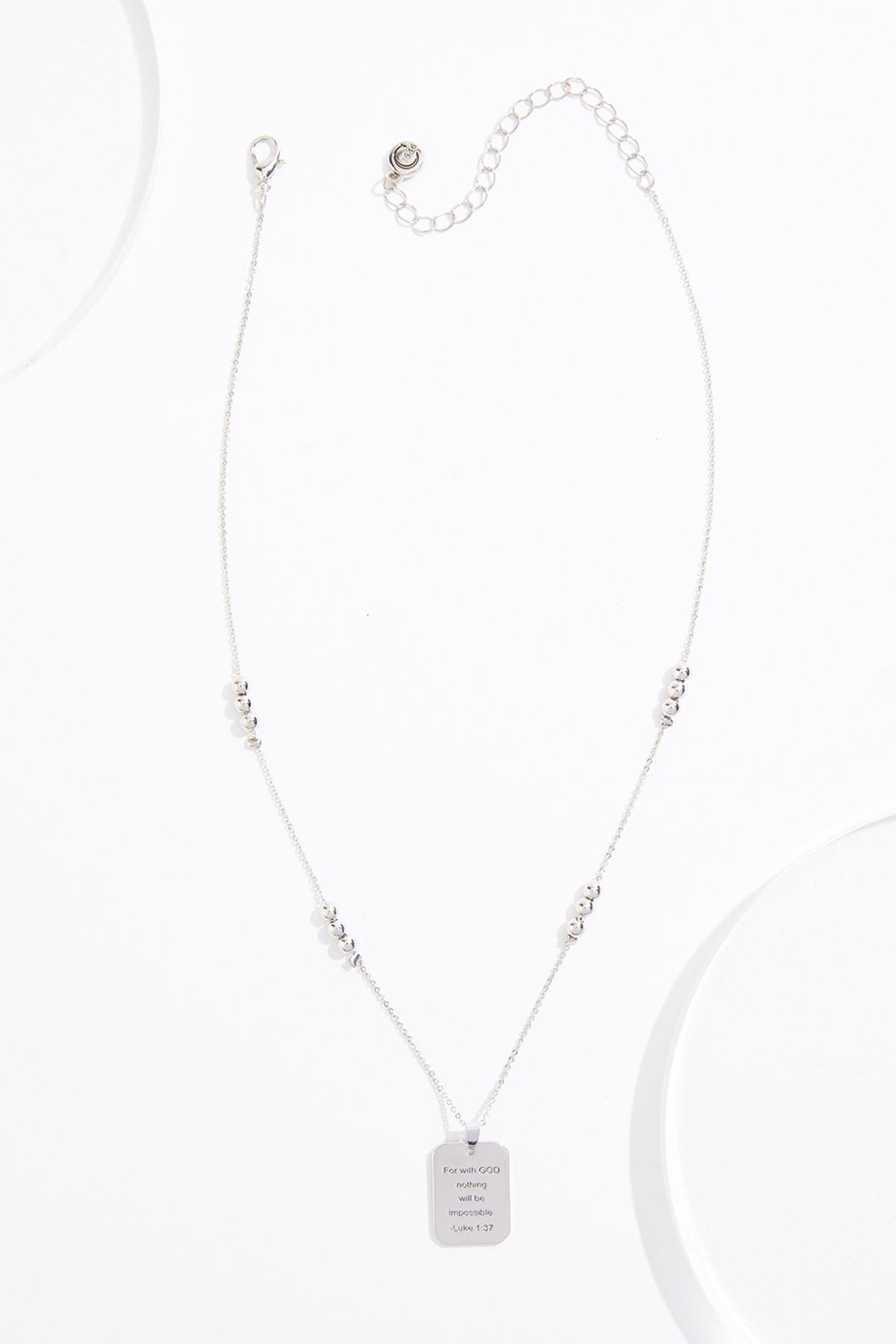 Pendant reads “For with God nothing will be impossible. Luke 1:37”