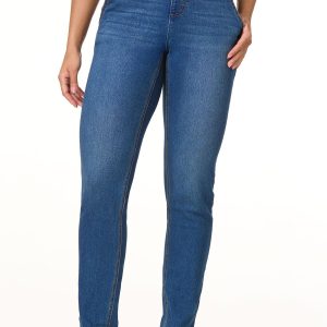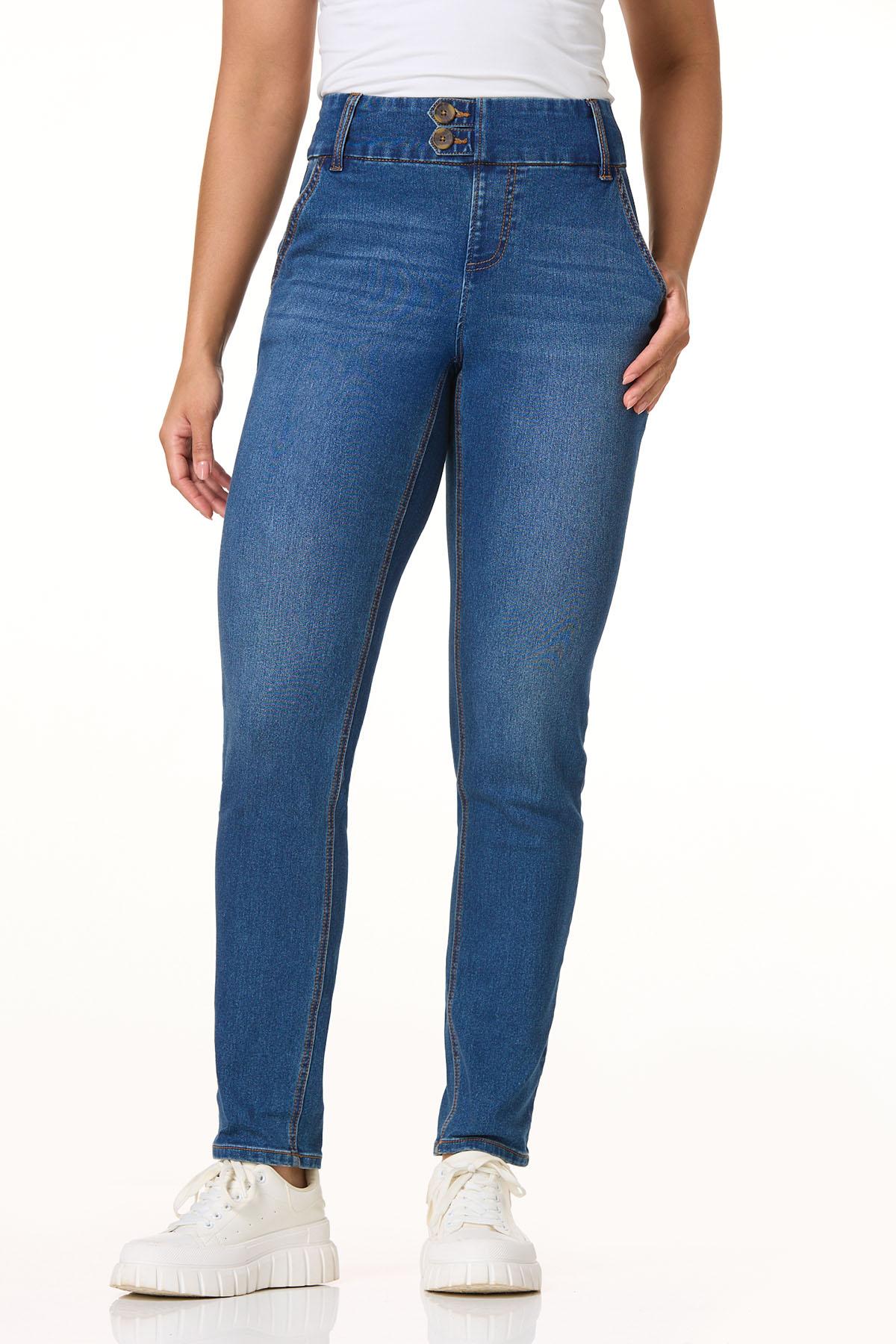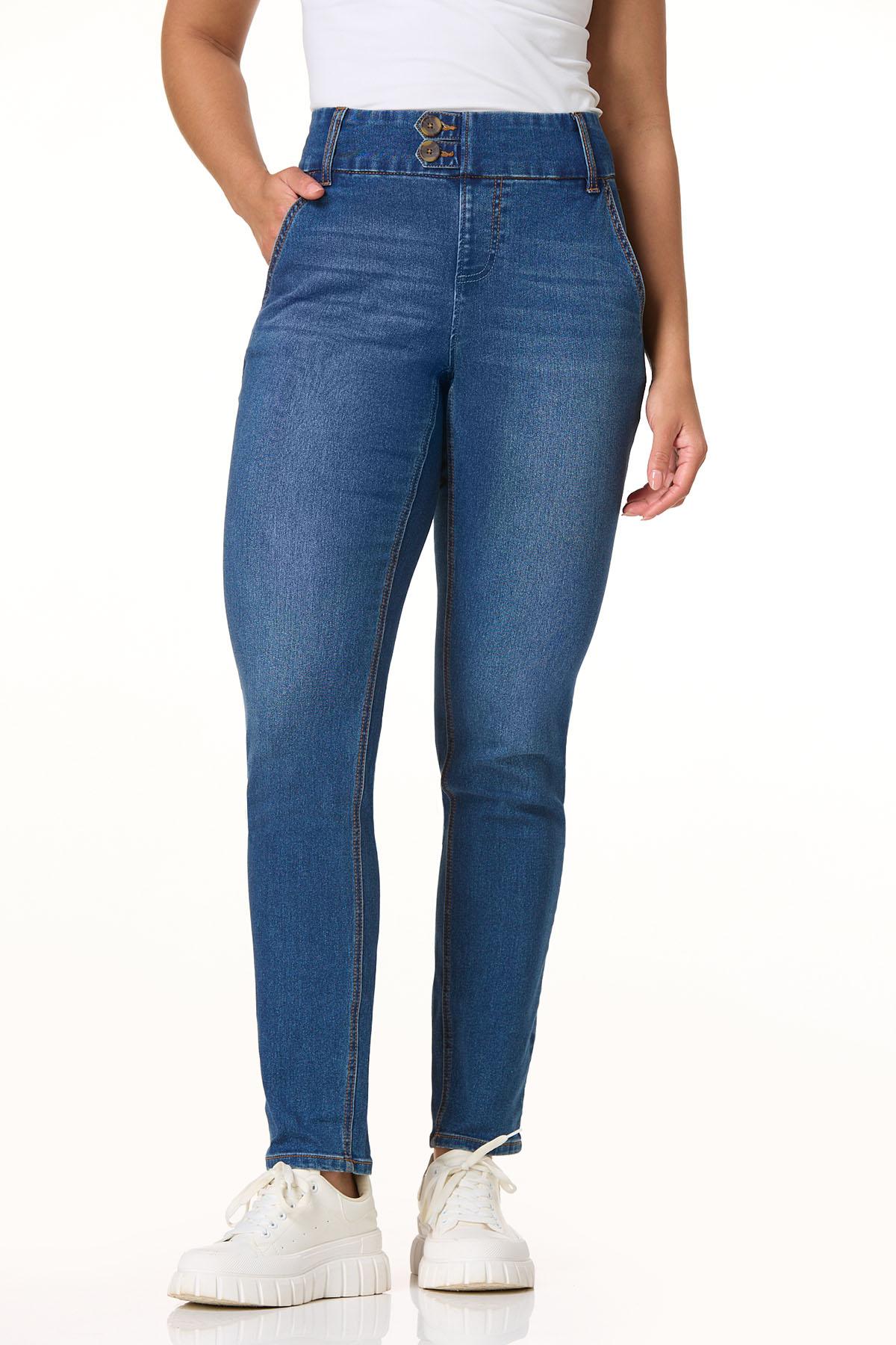 These denim blues are coming in comfy and still-so chic with a stretchy, pull-on waist, so-soft denim and a double button and tab closure for a look that’s ready to take on graphic tees and sweater season.