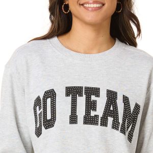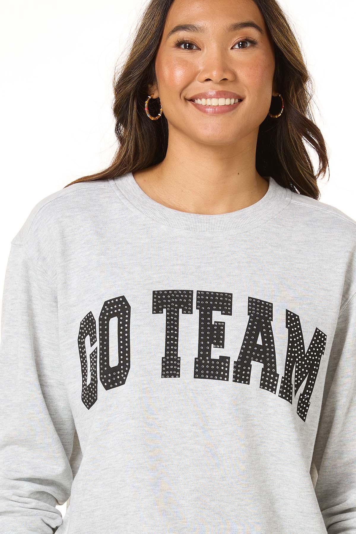 Cheer on your team by showing up in this comfy and spirited sweatshirt, featuring a scoop neckline, so-soft feel, relaxed fit and a “Go Team” graphic with stud accents for those shining moments you don’t want to miss.