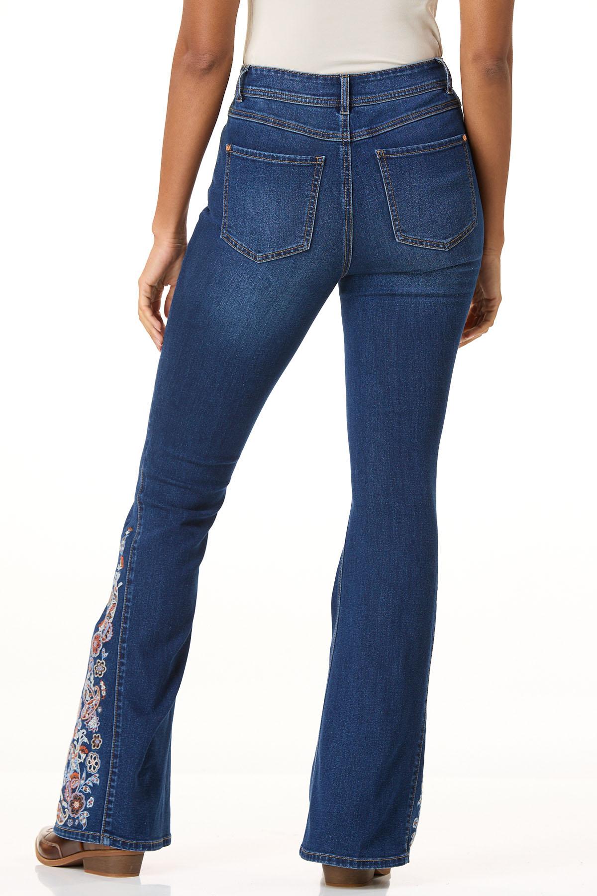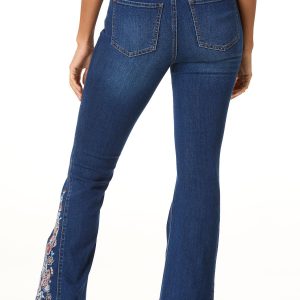 Elevate your denim game with these high-rise flare jeans in a rich dark wash. A bold floral paisley embroidered inset adds a vintage twist, turning every step into a statement.