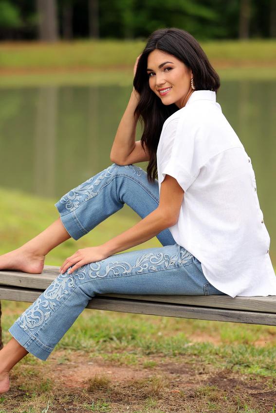 Embroidered Kick Flare Jeans