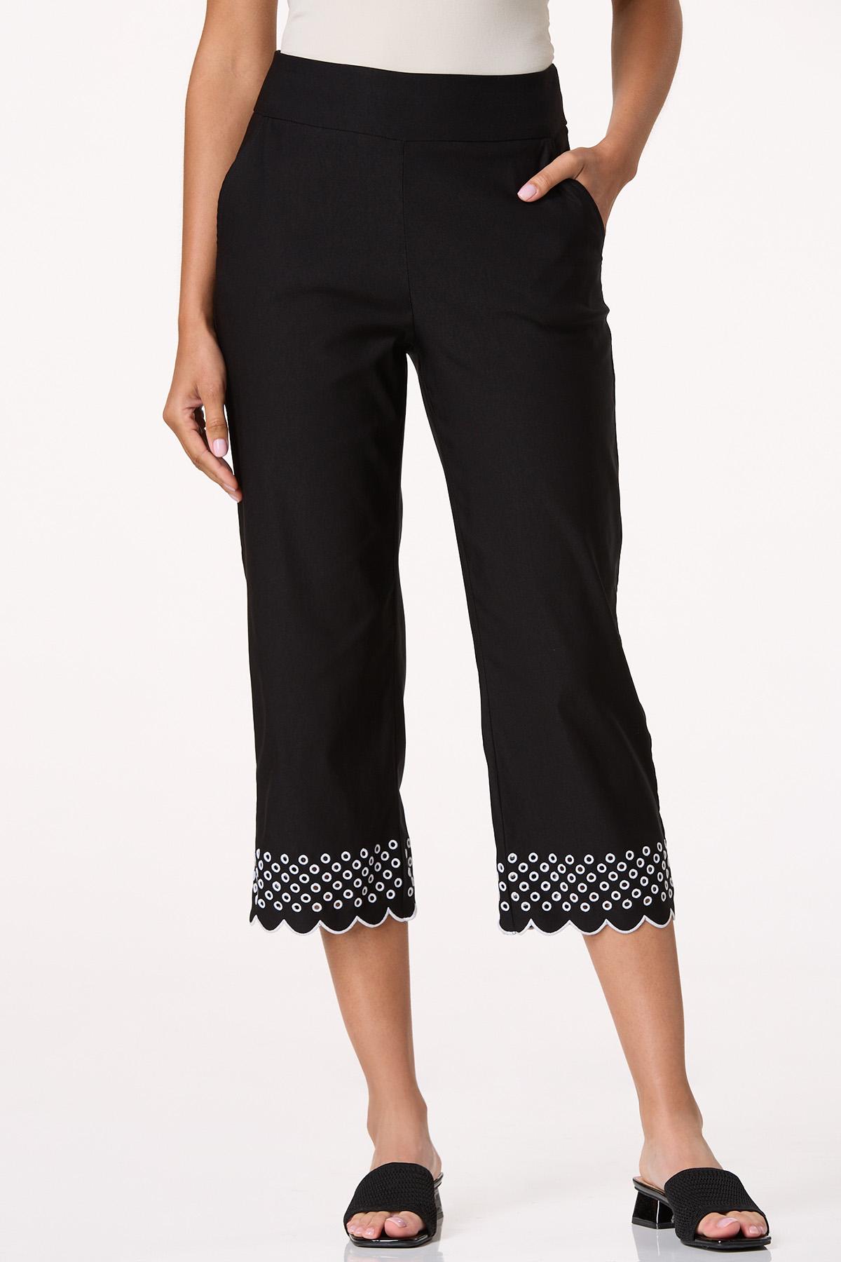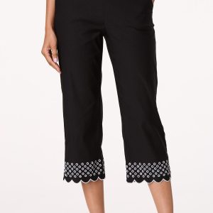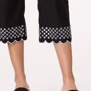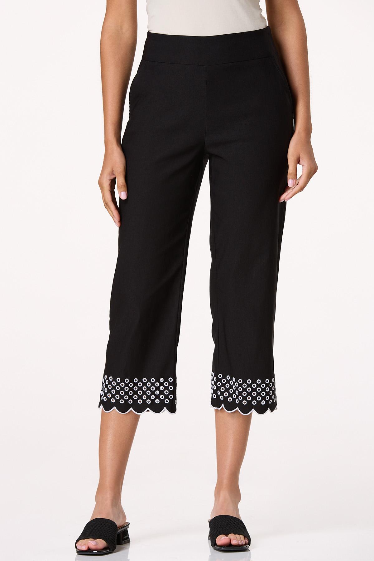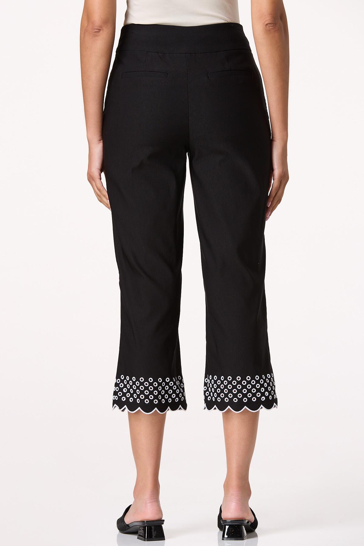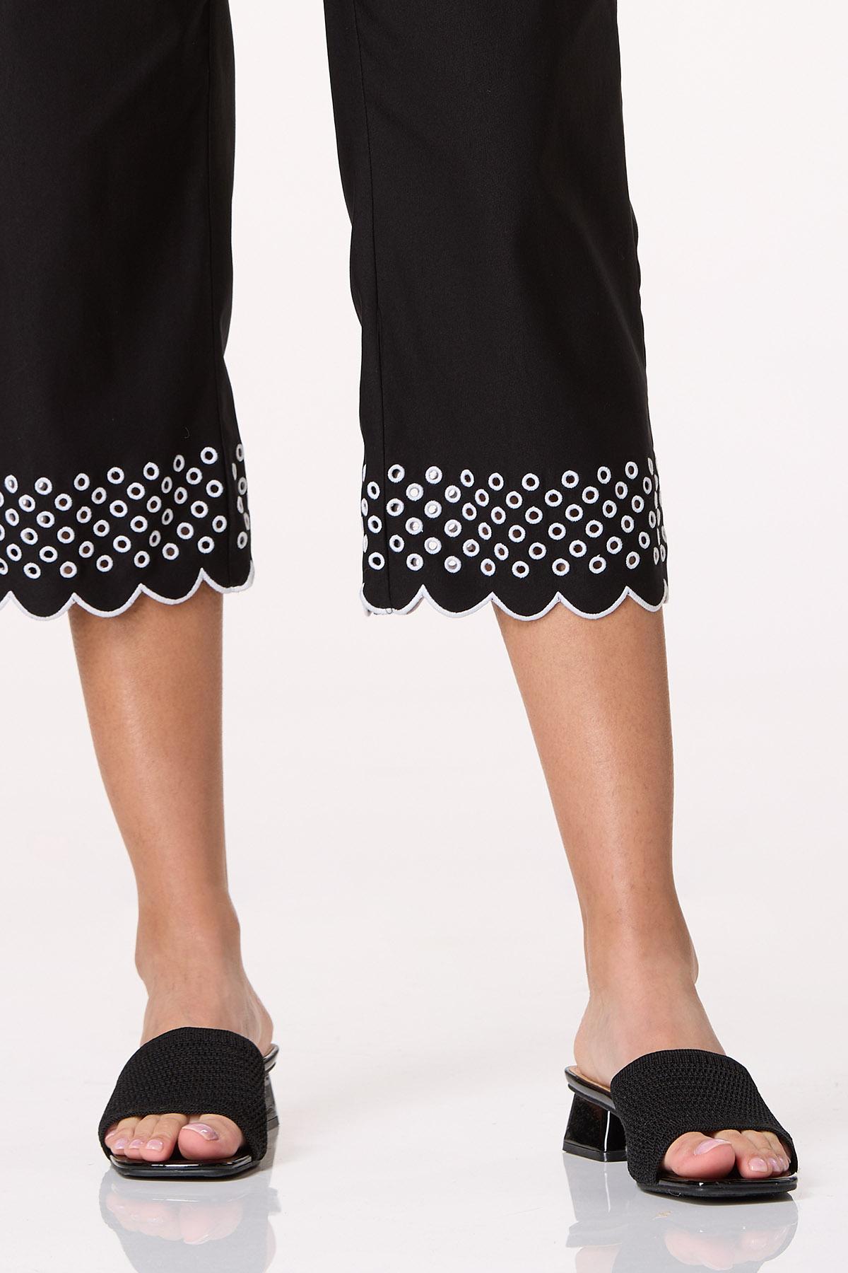 Eyelet Contrast Trim Cropped Pants
