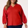 Look comfy and cute with this pullover style, featuring a hooded design, balloon sleeves, eyelet detail and a red hue topping a relaxed fit for a look you love pairing with your favorite denim.