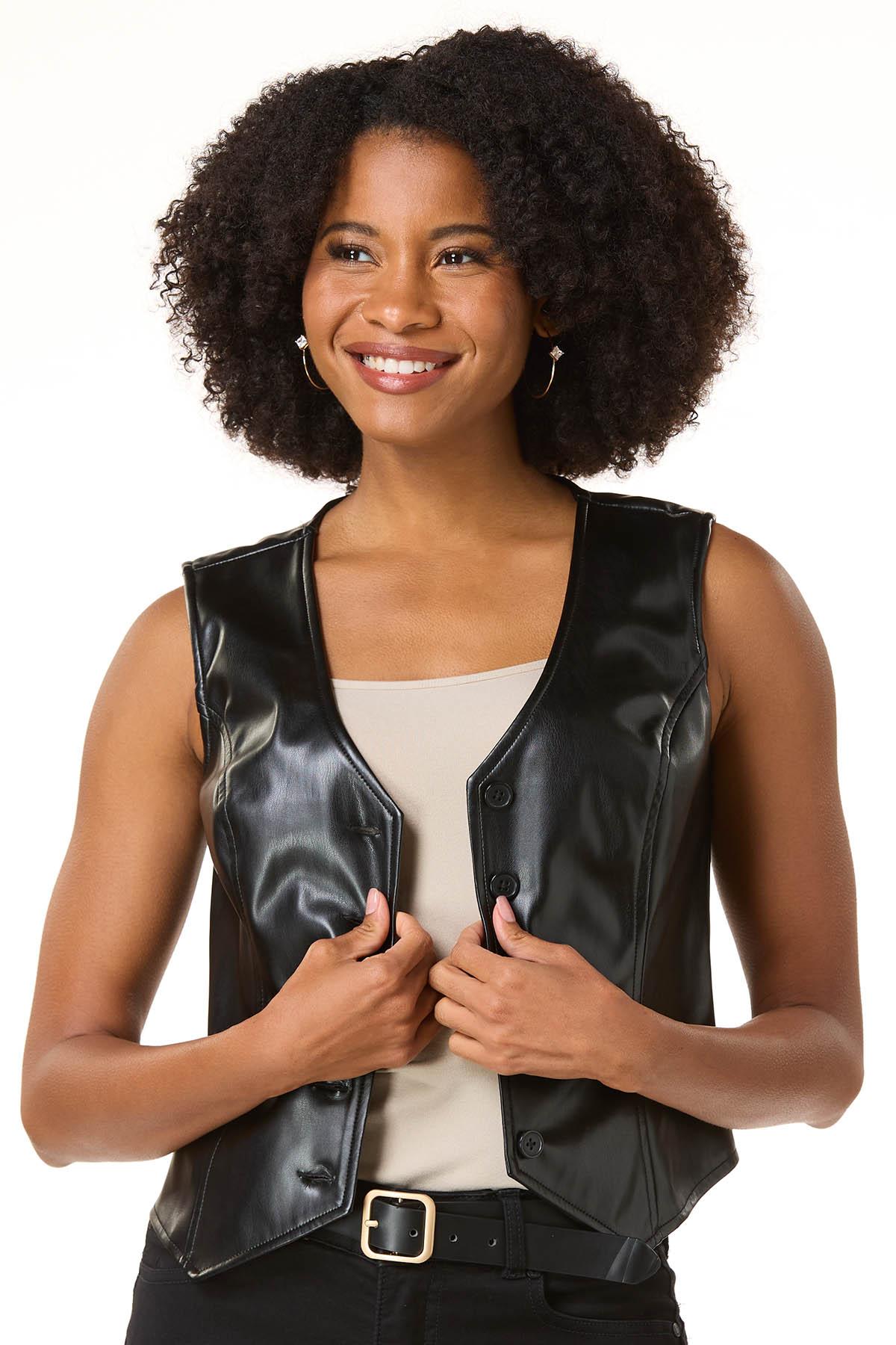 Looking pretty-cool will be an understatement with this one. Vests are what’s on the style menu and this faux leather piece will have you understanding what the hype is all about. The flattering fit and button-down front are perfect for adding a playful touch to any look.