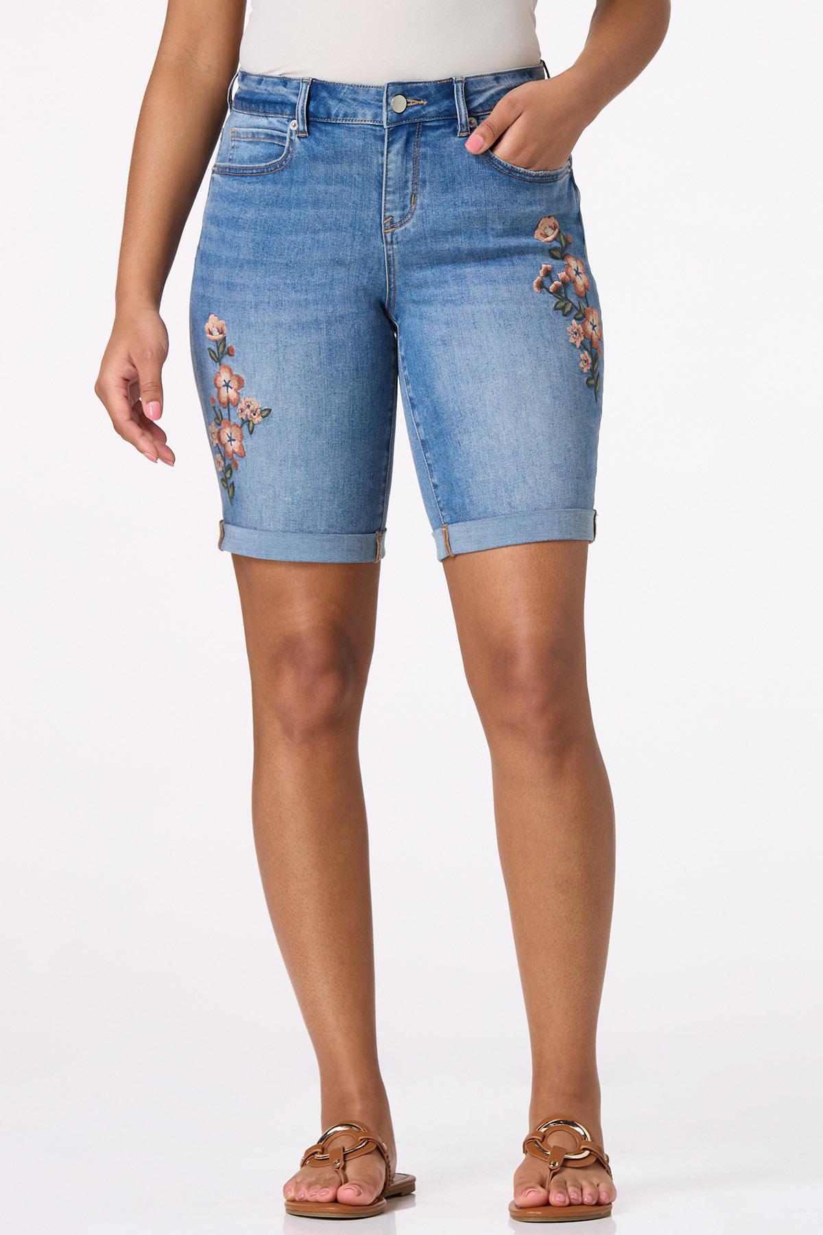 Floral Embroidered Denim Shorts