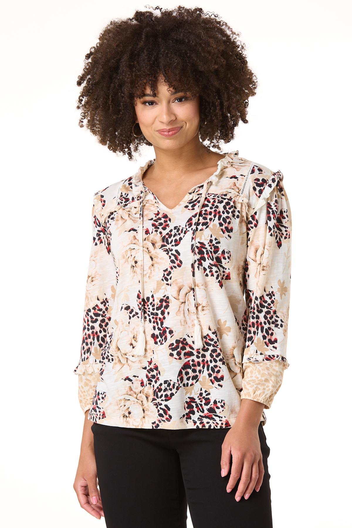 Floral Leopard Tie Top