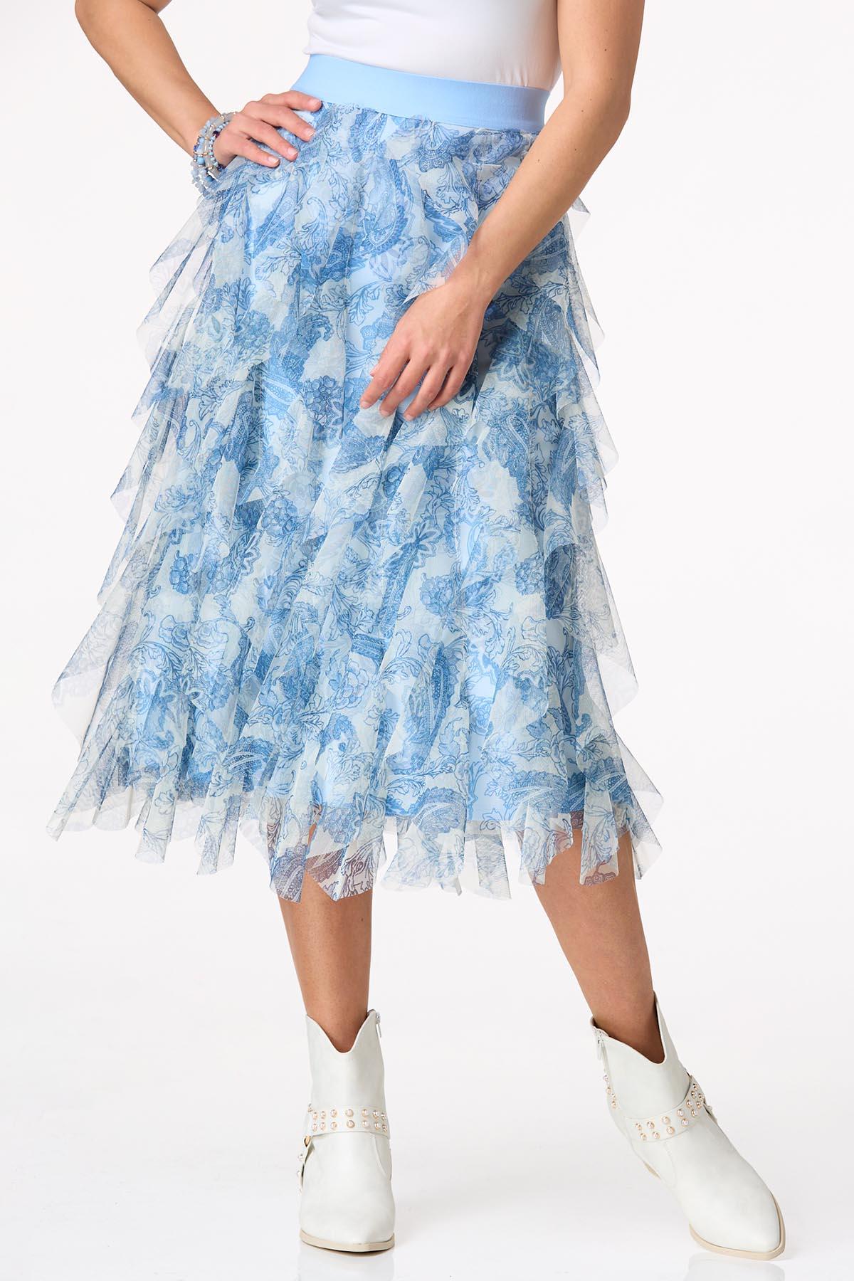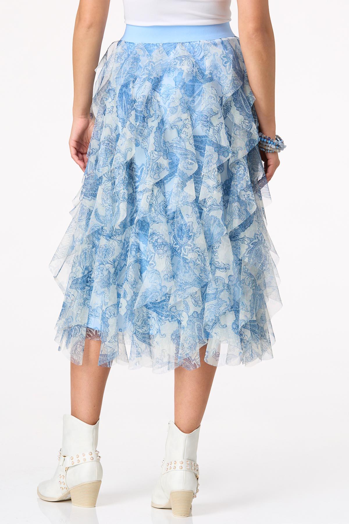 How stunning you’ll look in this sweet midi style, featuring an allover mesh with a dreamy-paisley print, bold elastic waist and frills for days (and nights, of course). Warning: the compliments won’t stop when you show up in this ruffled style.