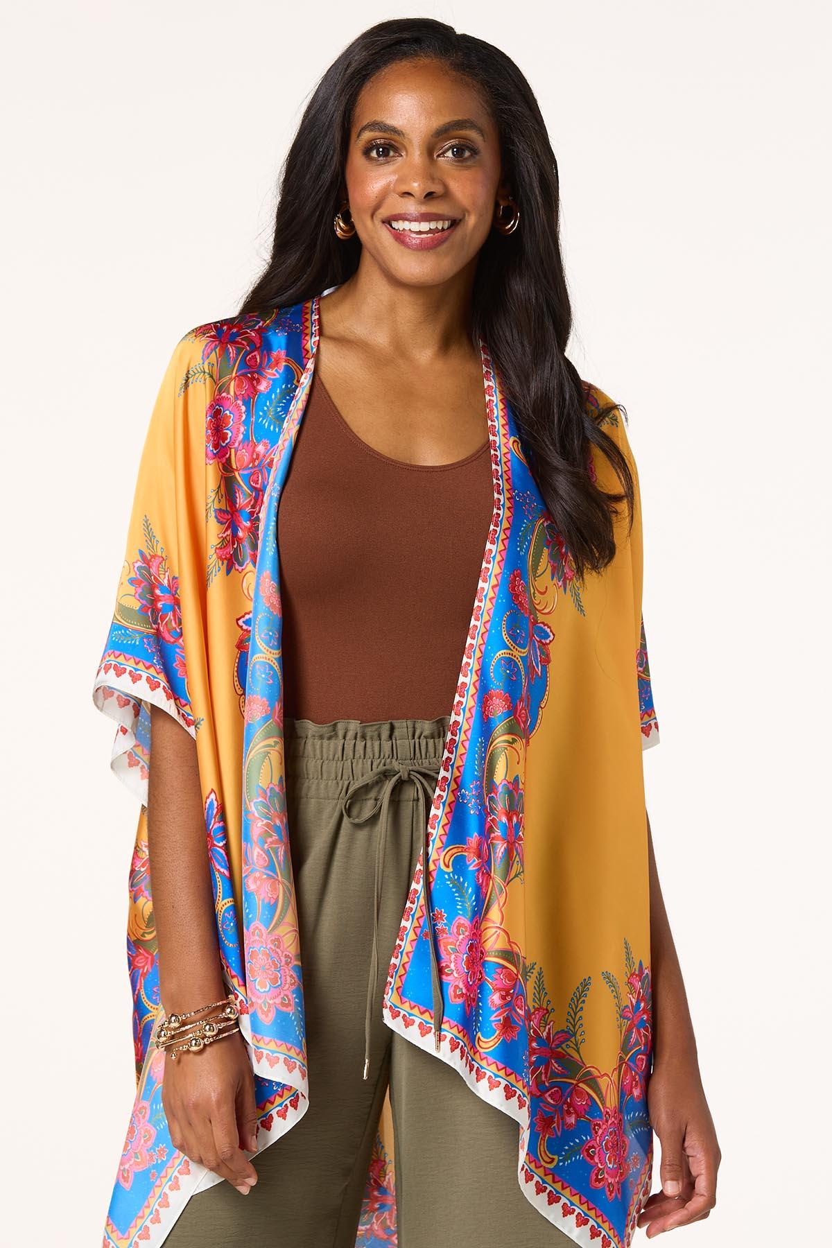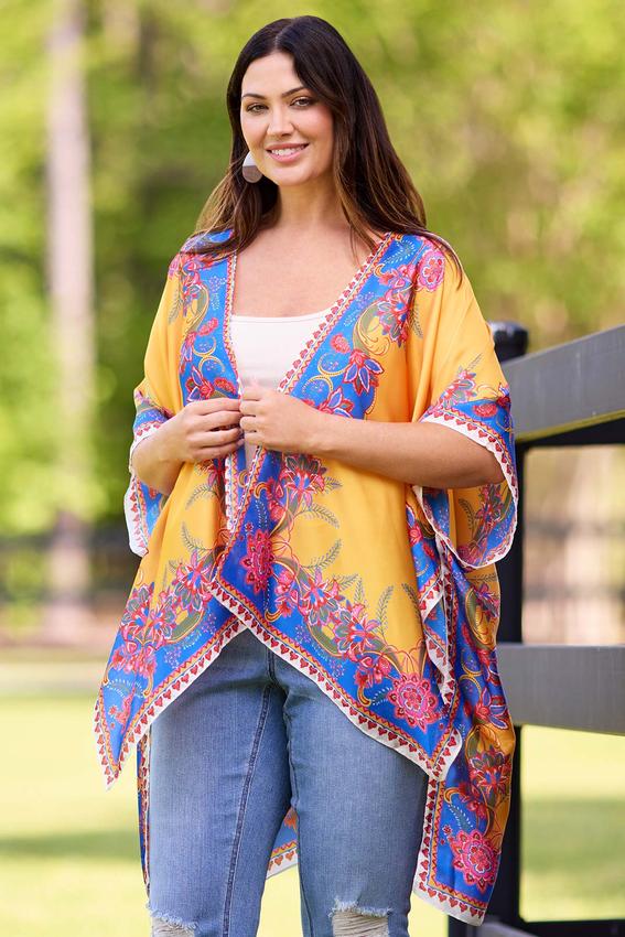 Floral Placement Silky Kimono