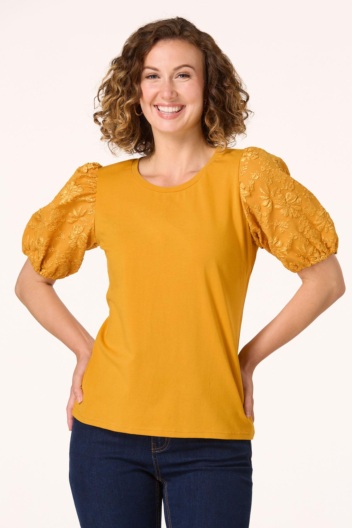 Floral Textured Puff Sleeve Top