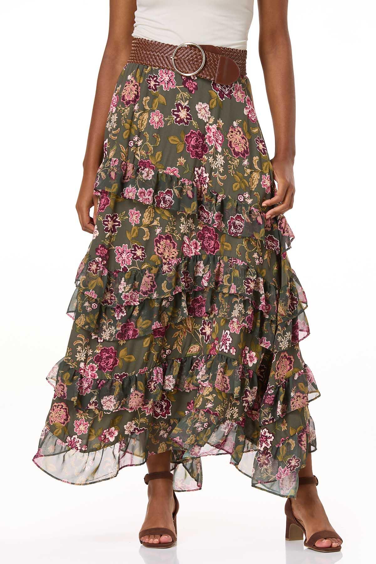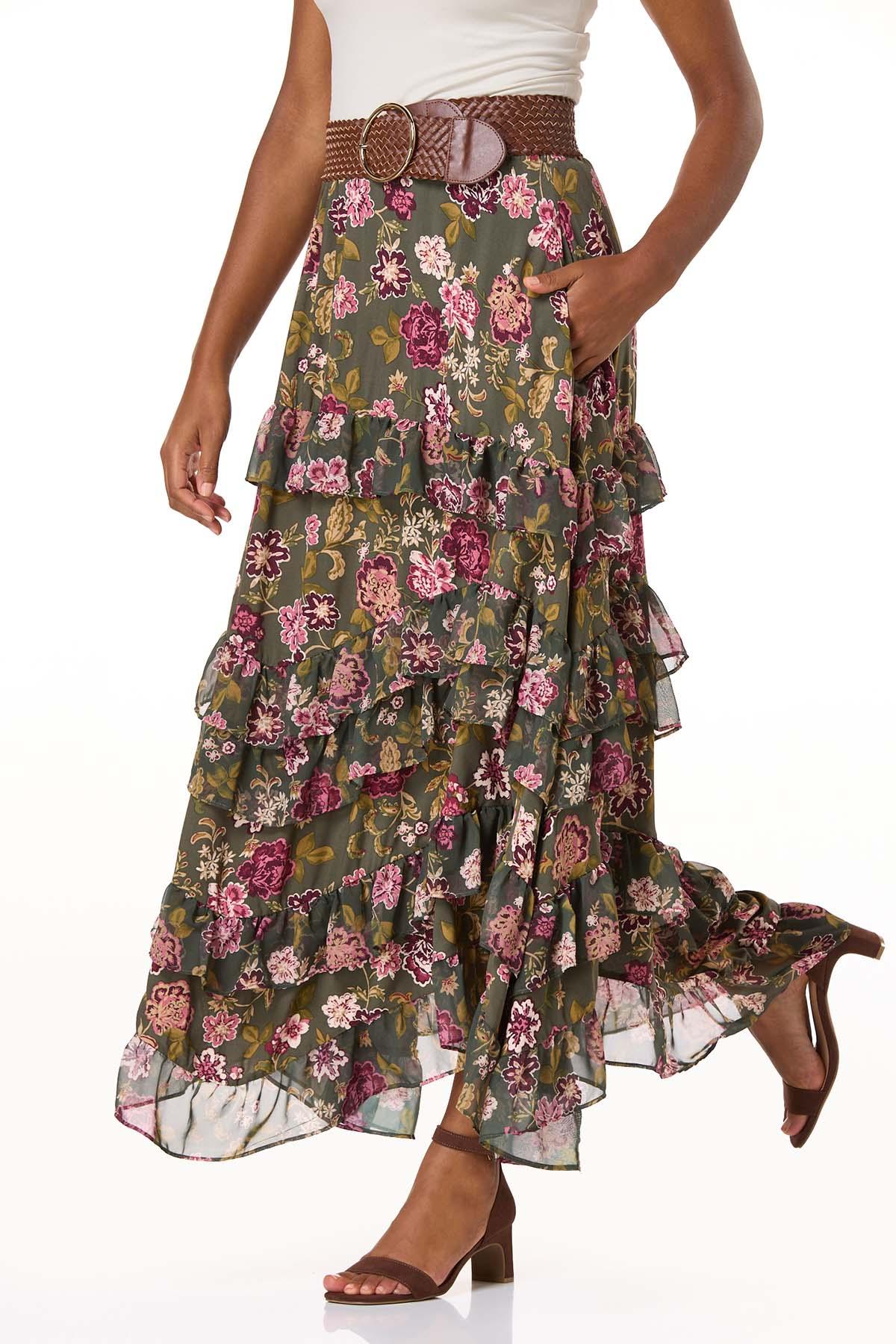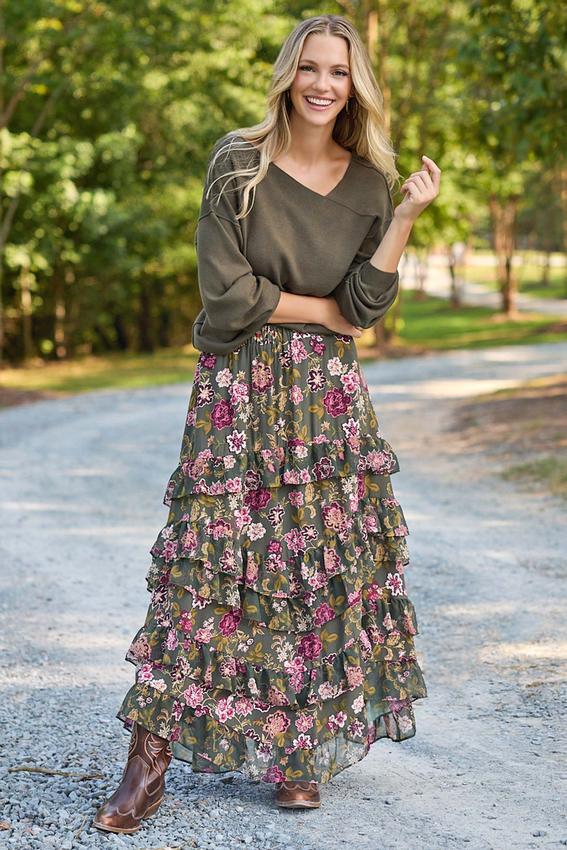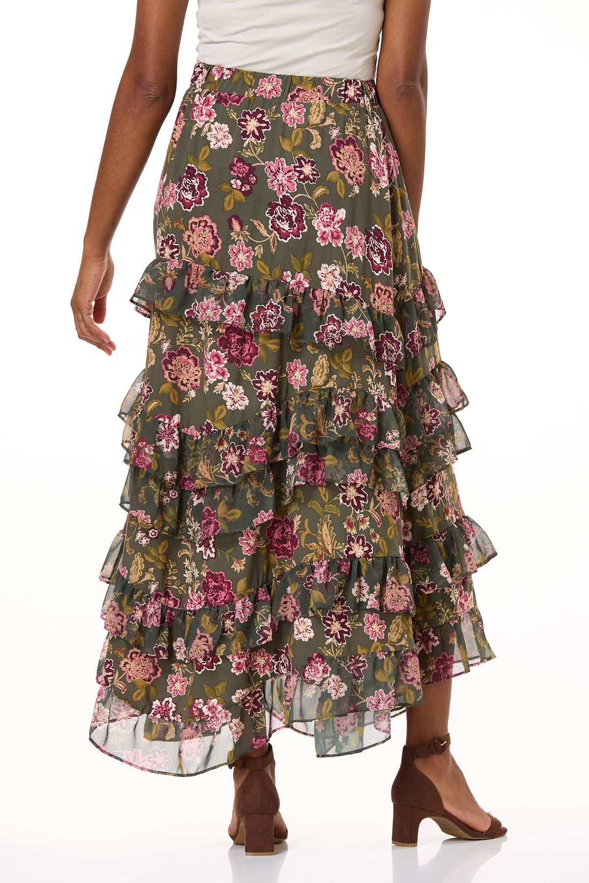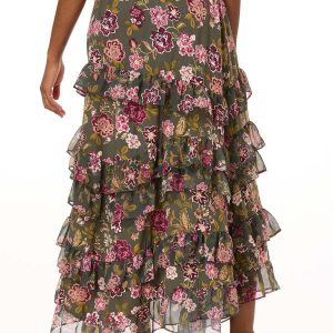 Floral Tiered Ruffle Maxi Skirt