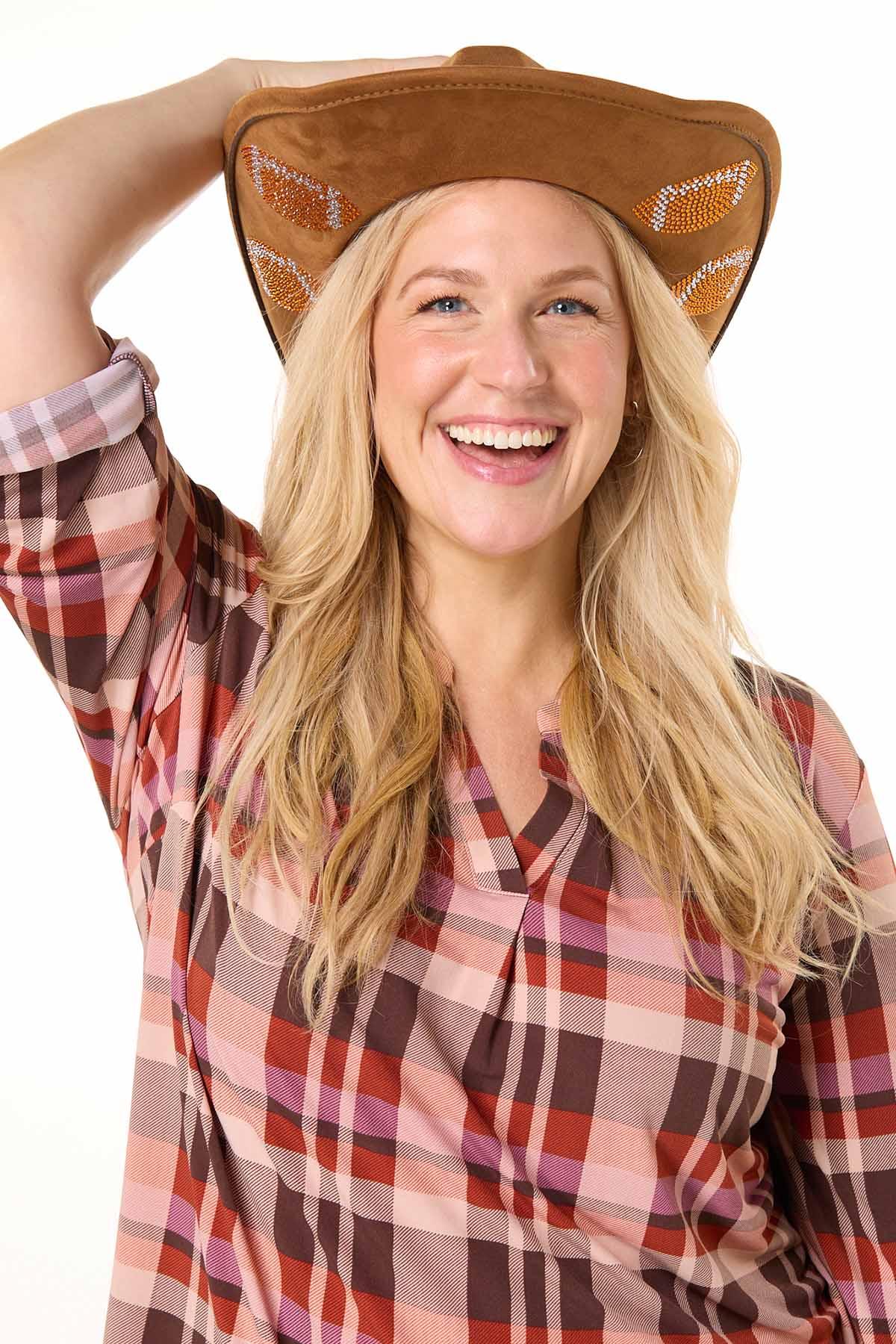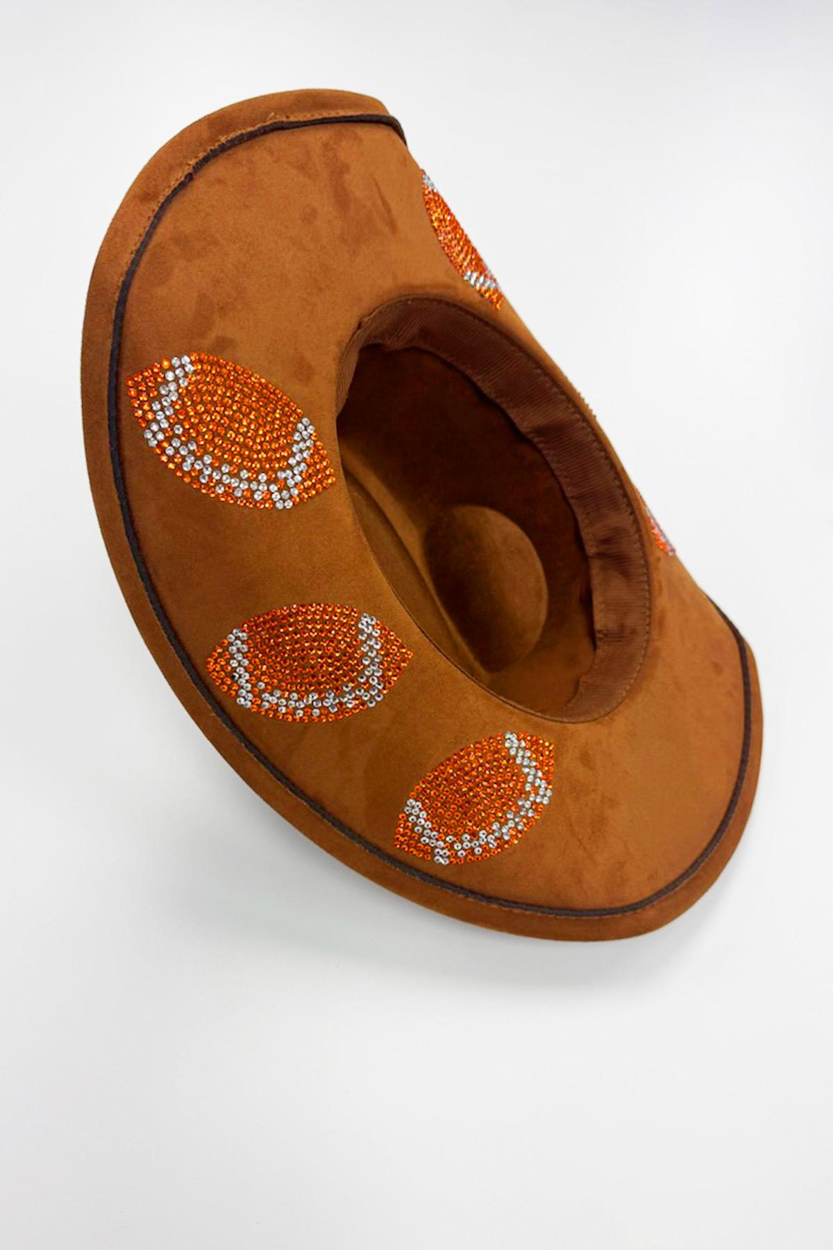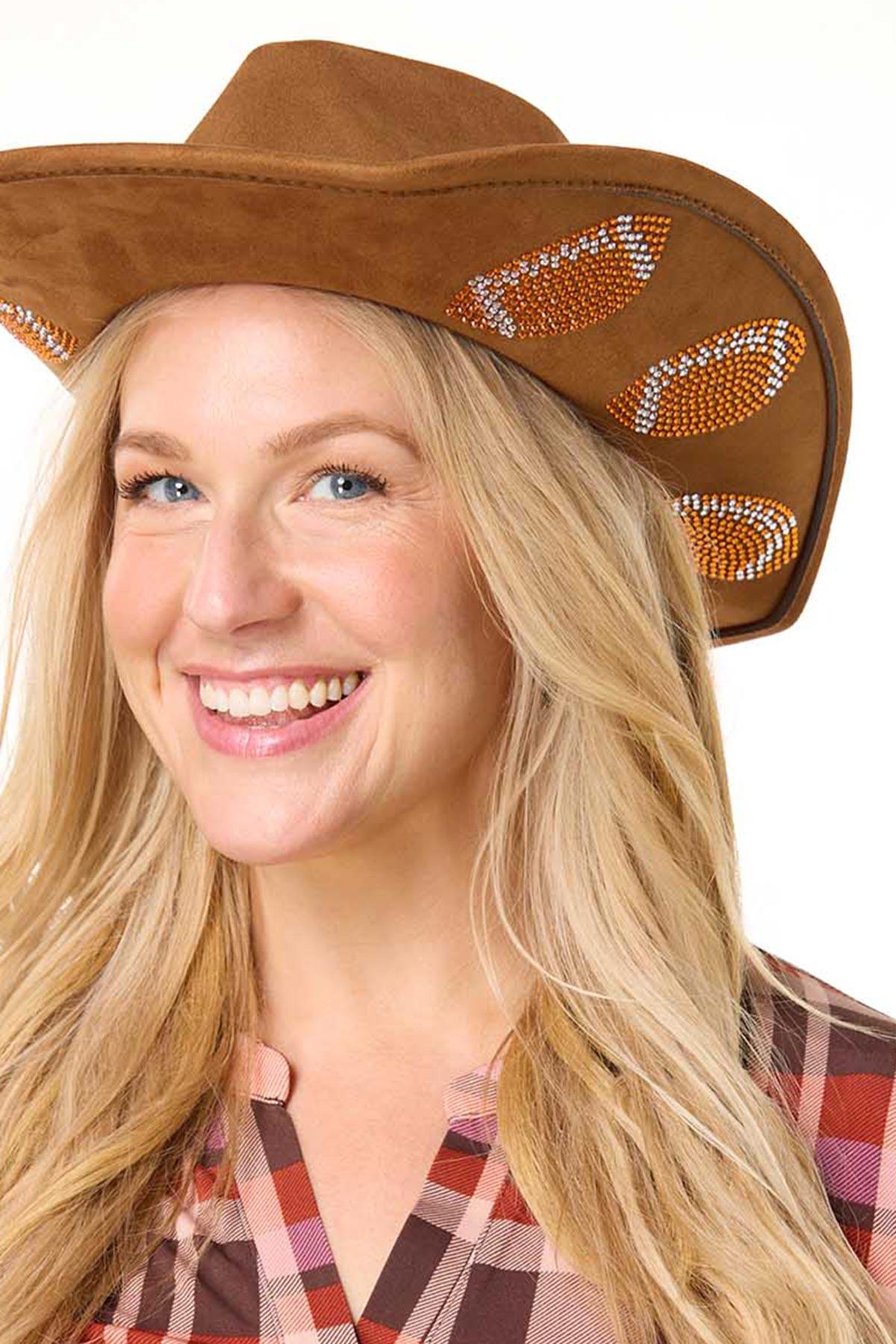 Football Embellished Western Hat – Brown