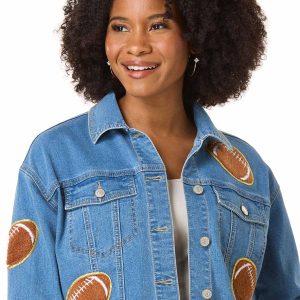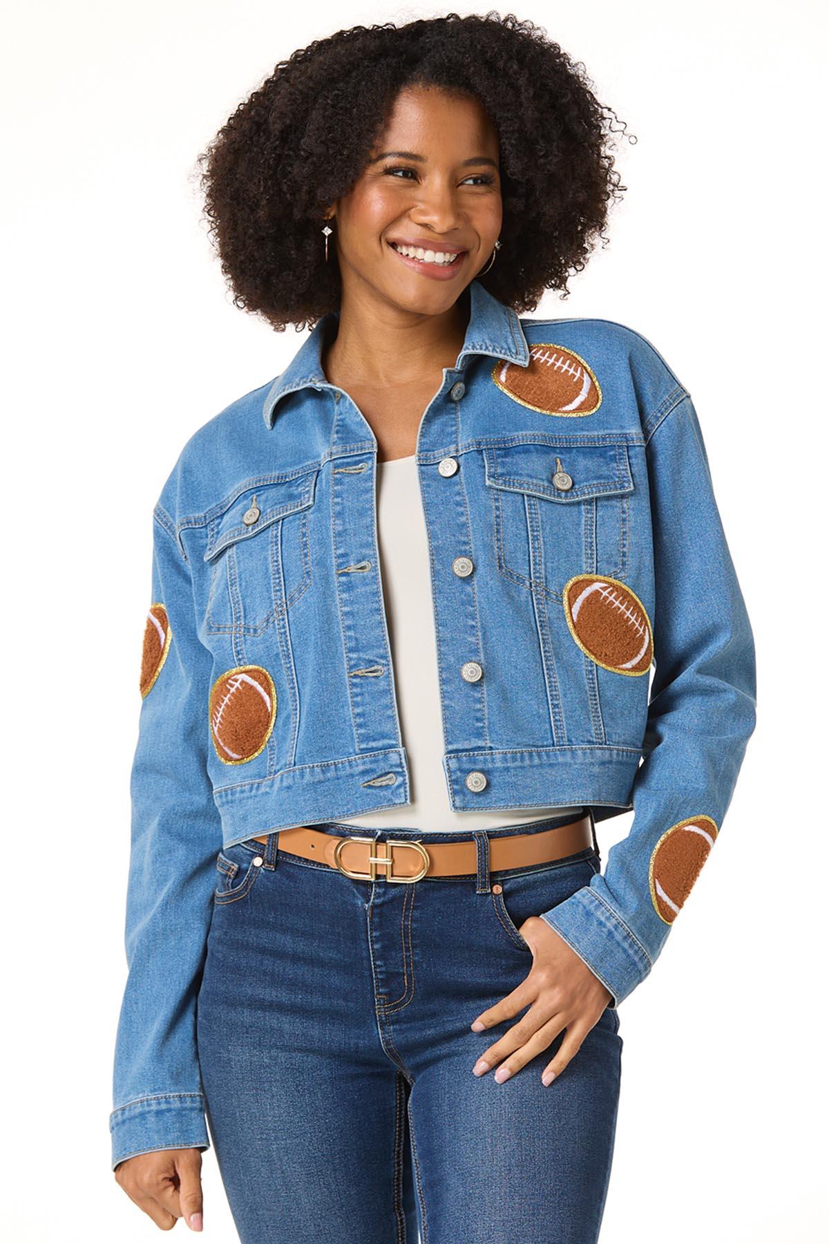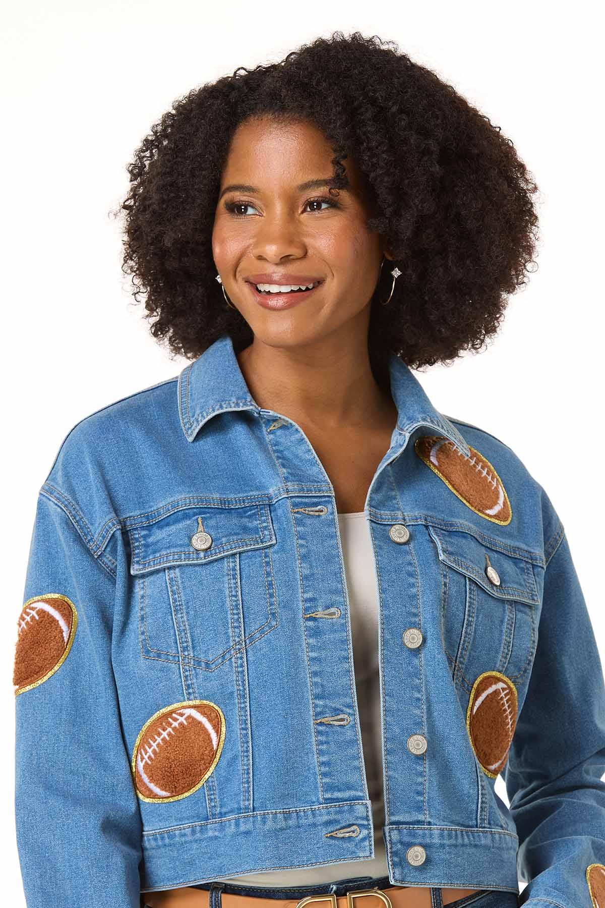 It’s game day every day in this standout denim jacket. With textured football patches throughout, this classic cut blends athletic edge with timeless style – made for those who play to win.