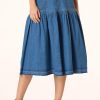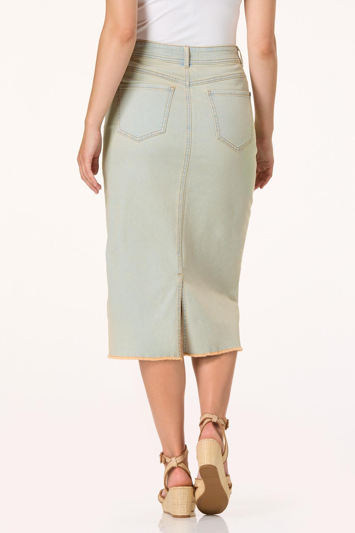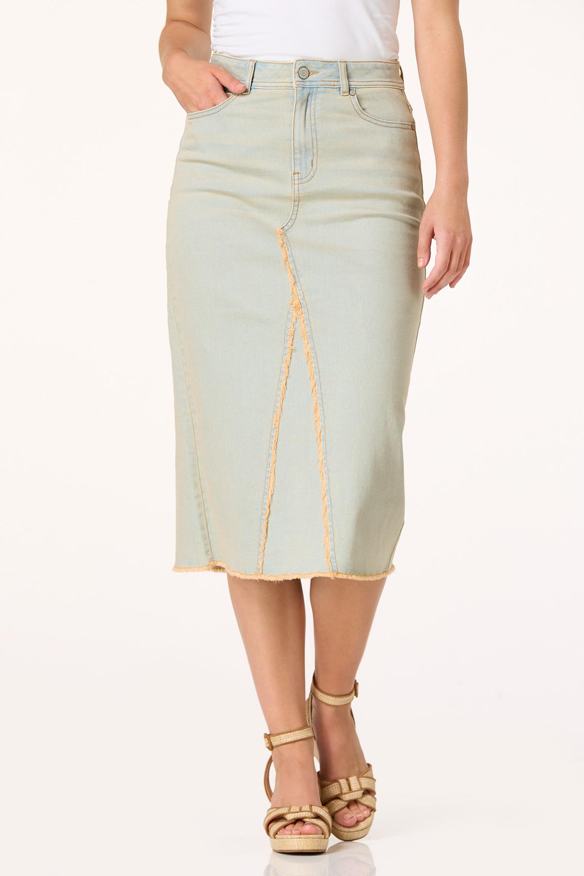 Just a girl and her favorite denim skirt is about to be you with the vintage feel of this must-have midi. Perfect with a tee, tank or even those favorite fall sweaters, this skirt features a faded-wash blue, frayed trim and the most comfortable fit for a feel-good, look-good finish.