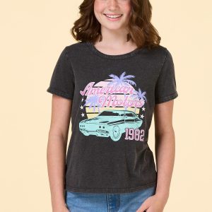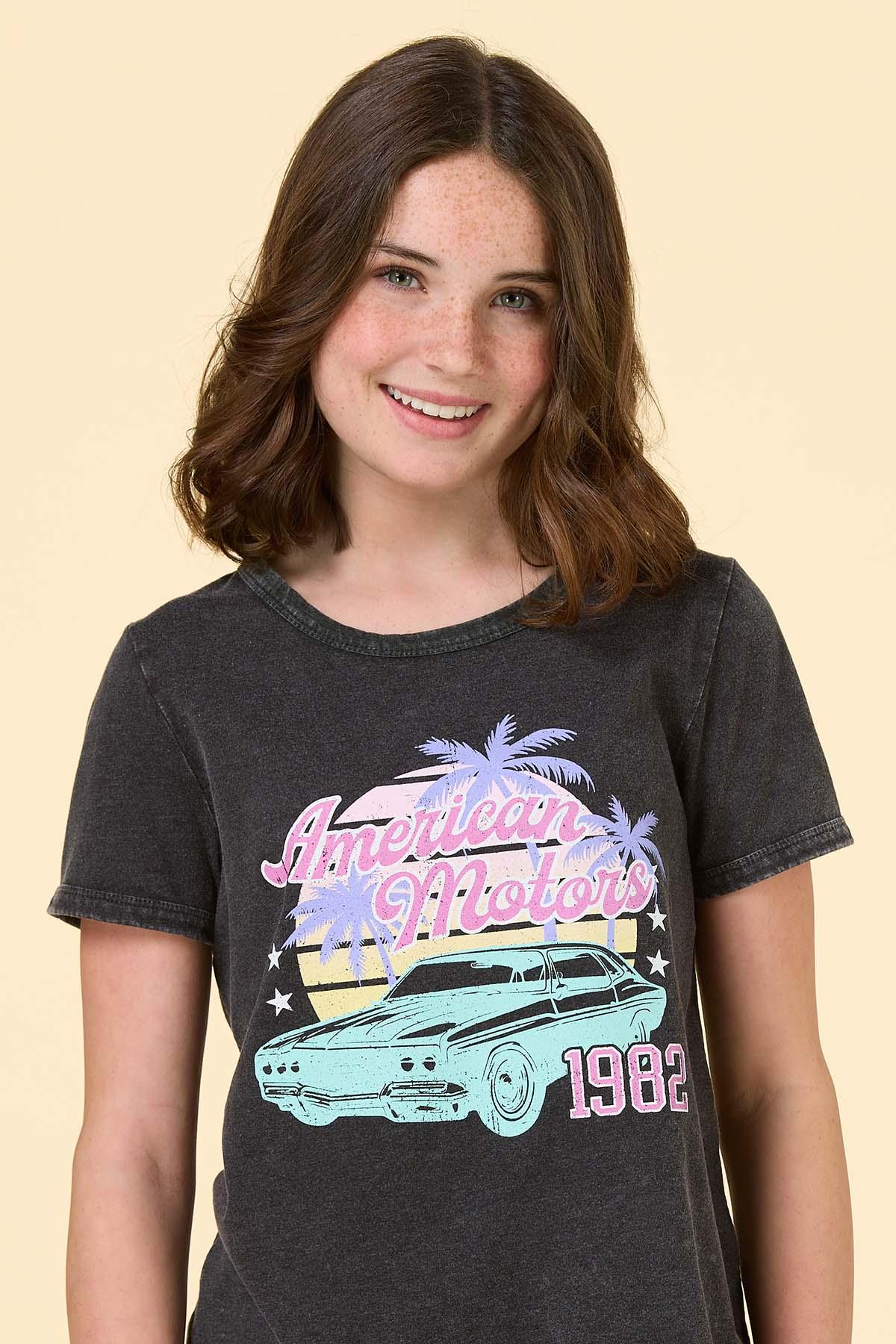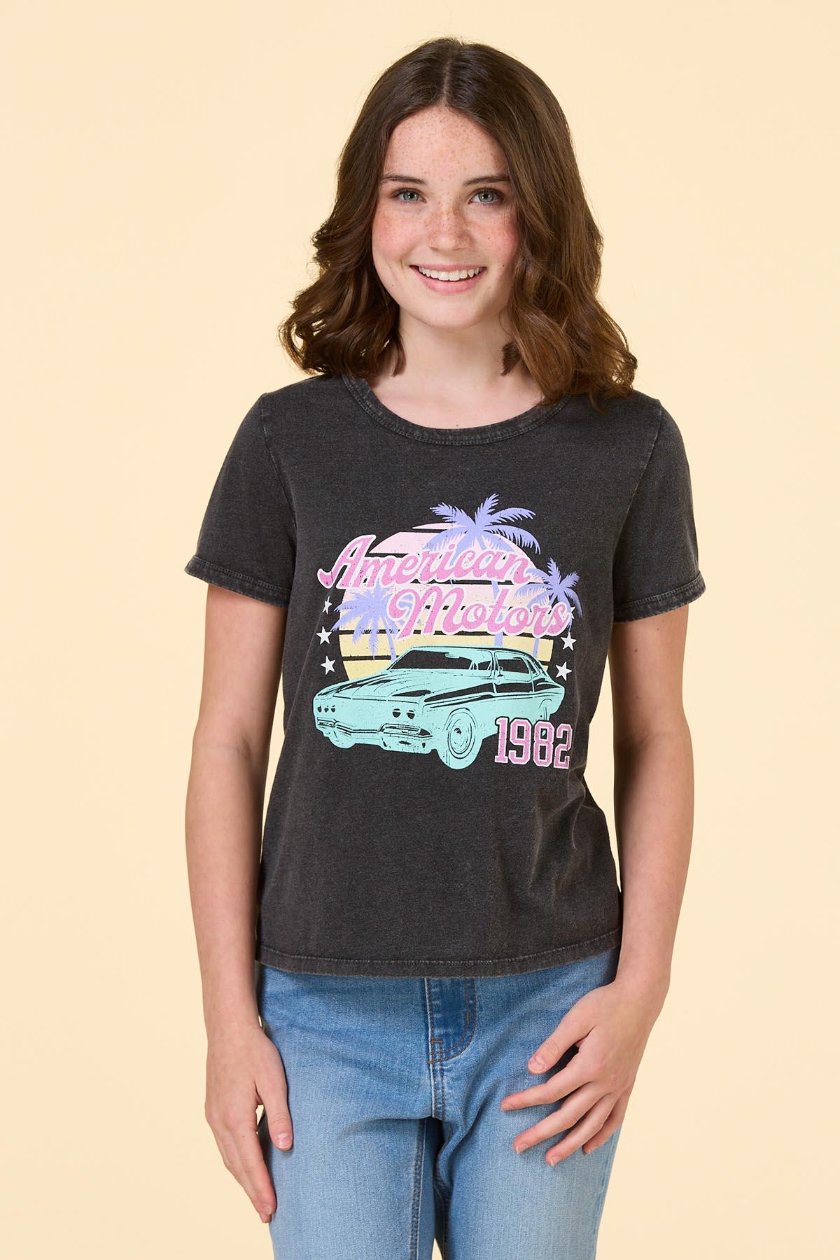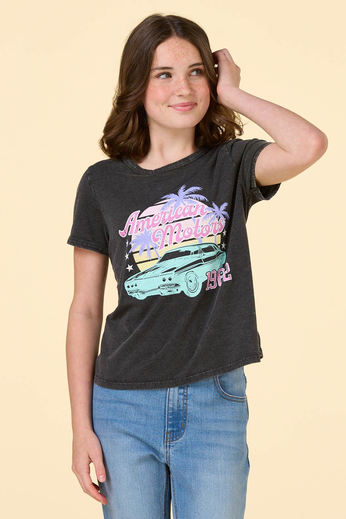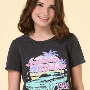 Keep cool in the summer heat with this graphic tee, featuring a scoop neckline, vintage graphic and buttery-soft feel for a look you’ll wear on repeat with your favorite denim shorts.