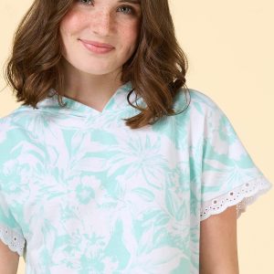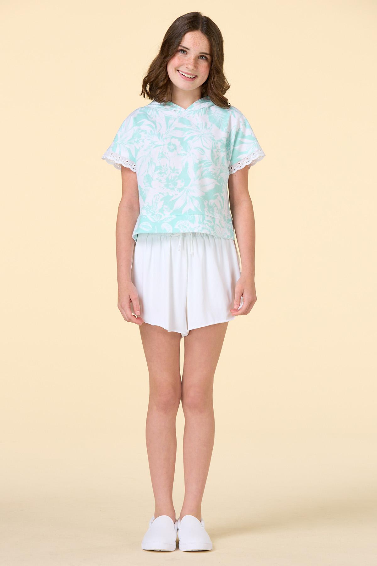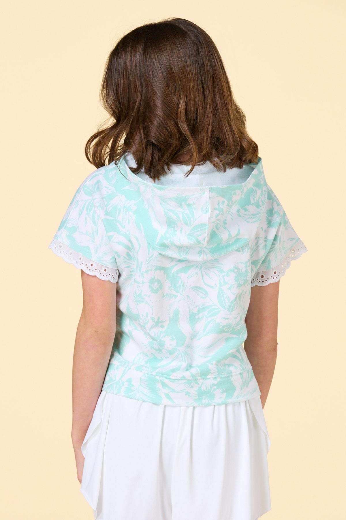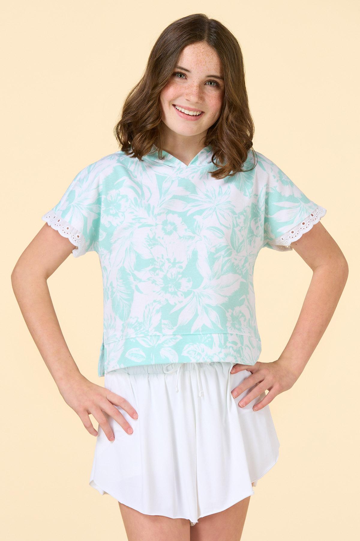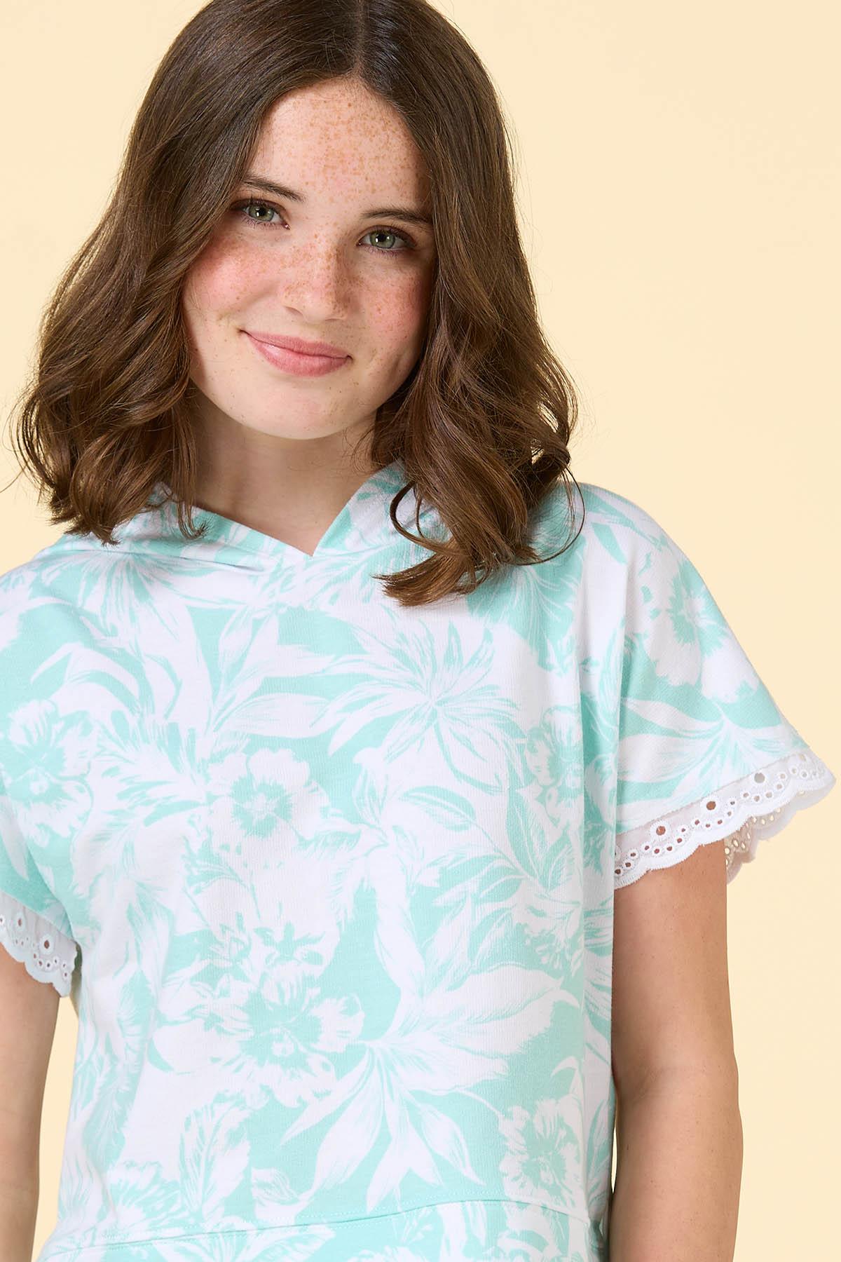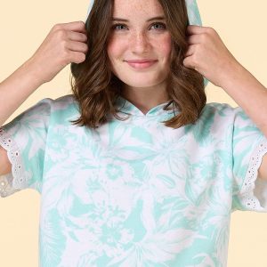 You can be sporty, casual and still so-cute with this hooded style, featuring a comfortable, french terry fabric, tropical-floral print, side slits and eyelet-trimmed sleeves for that icing on the cake finish.