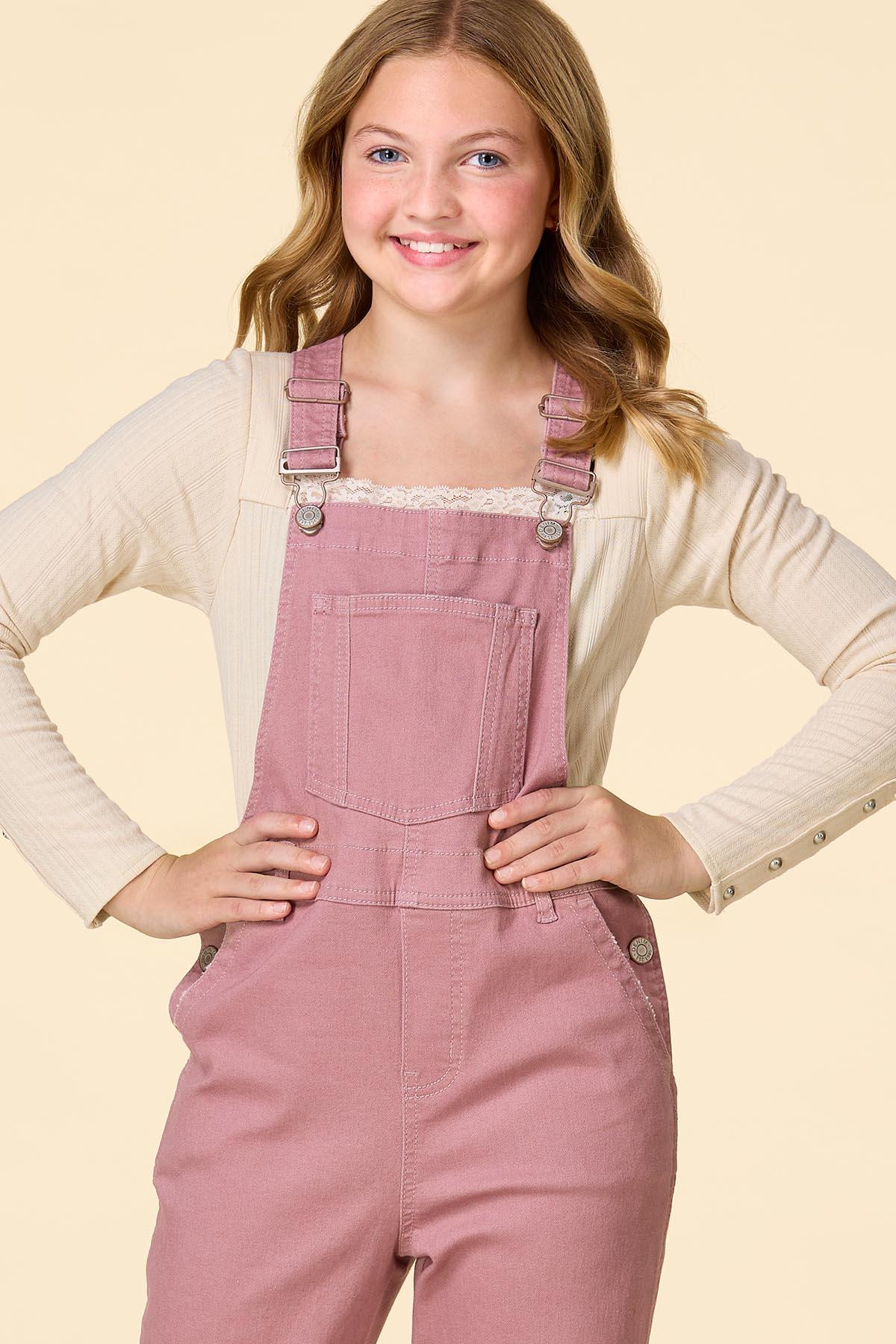 Pretty in pink and made for play! These cute overalls feature adjustable shoulder straps, handy pockets, and playful knee distressing for just the right amount of edge. Perfect for twirling, exploring, and everything in between!