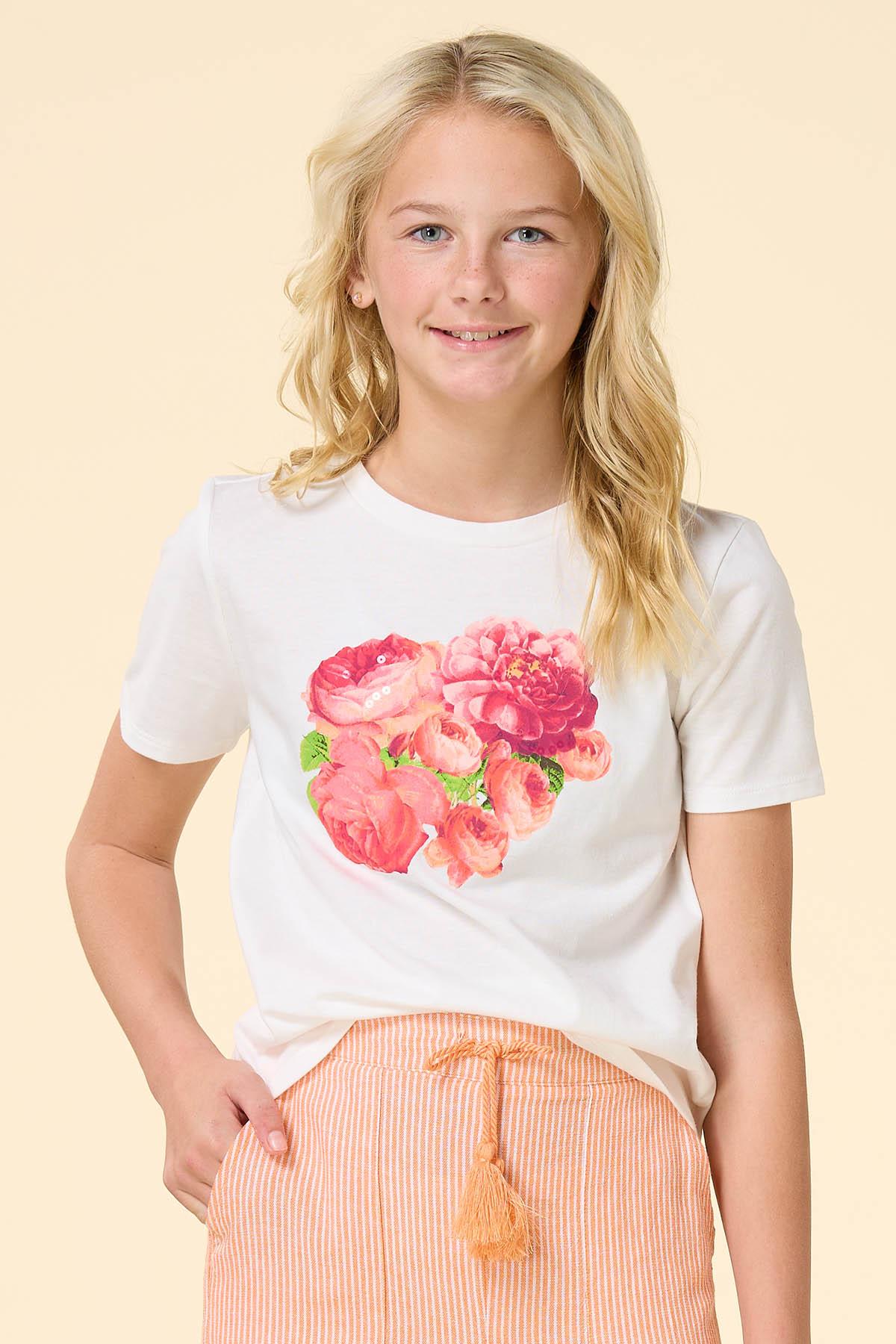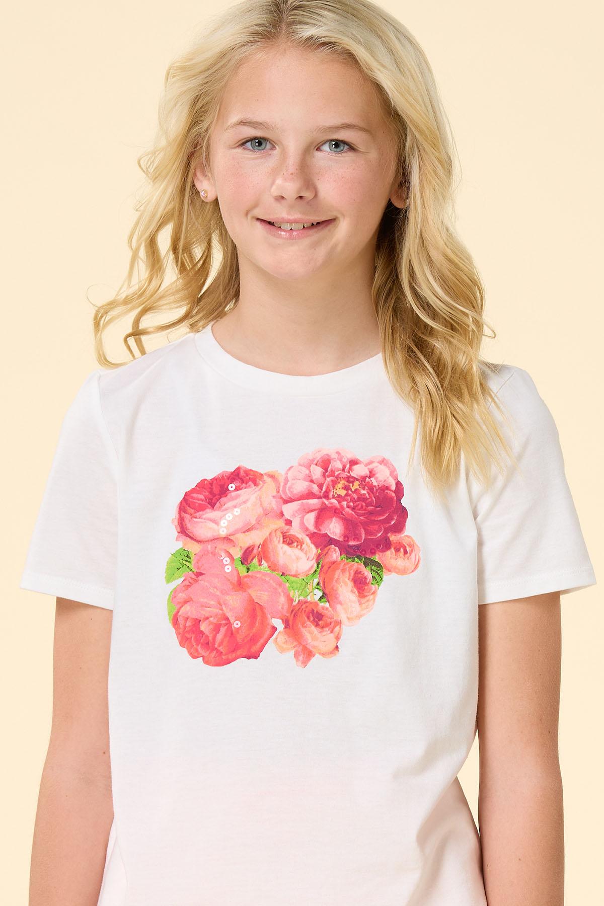 Buy yourself the flower and the sweetest warm-weather style with this one, featuring a scoop neckline, soft knit and a bouquet of roses with subtle sequin detail.