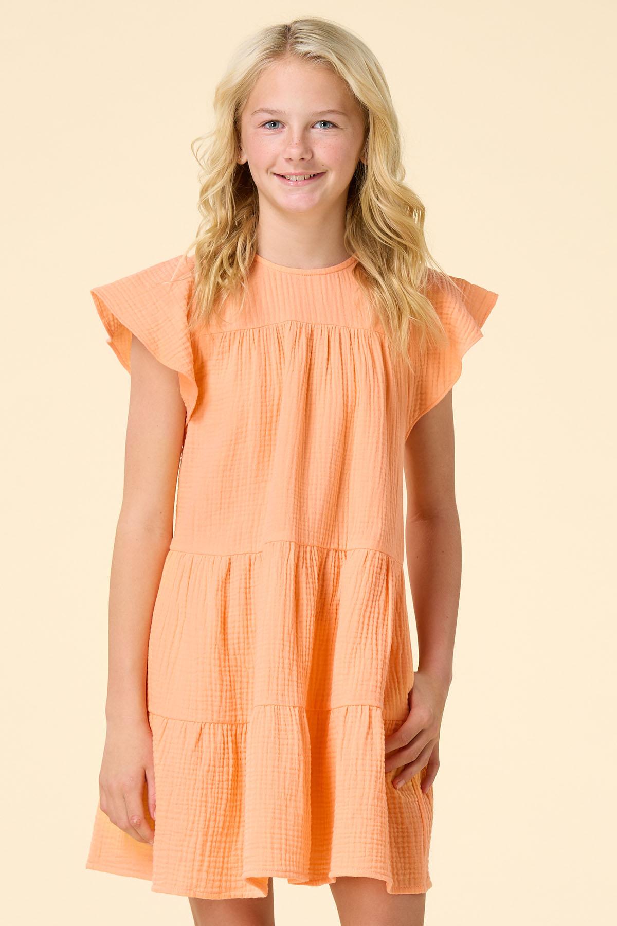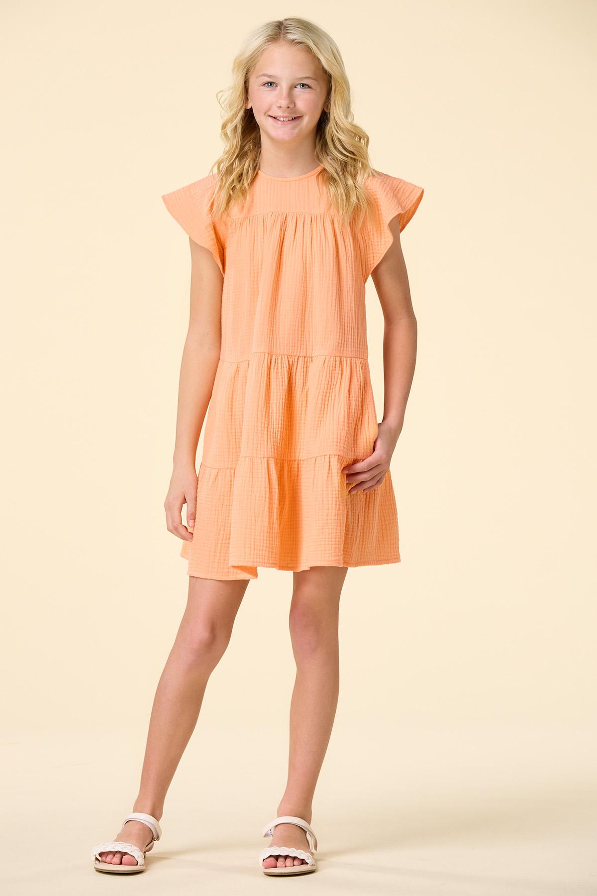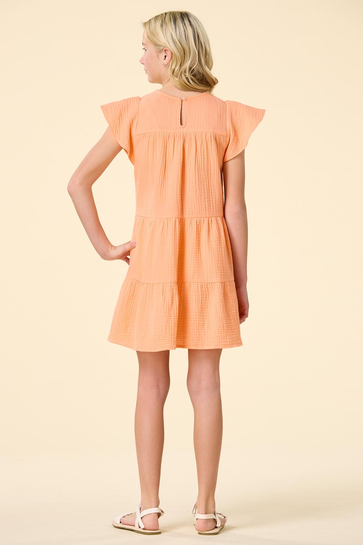Watch out sunshine, you have a little competition with this one. A bright-orange hue, tiered design, flutter sleeves and textured, wrinkle-free fabric makes this sweet style one to pack and one to wear for those beautiful days in the sun.