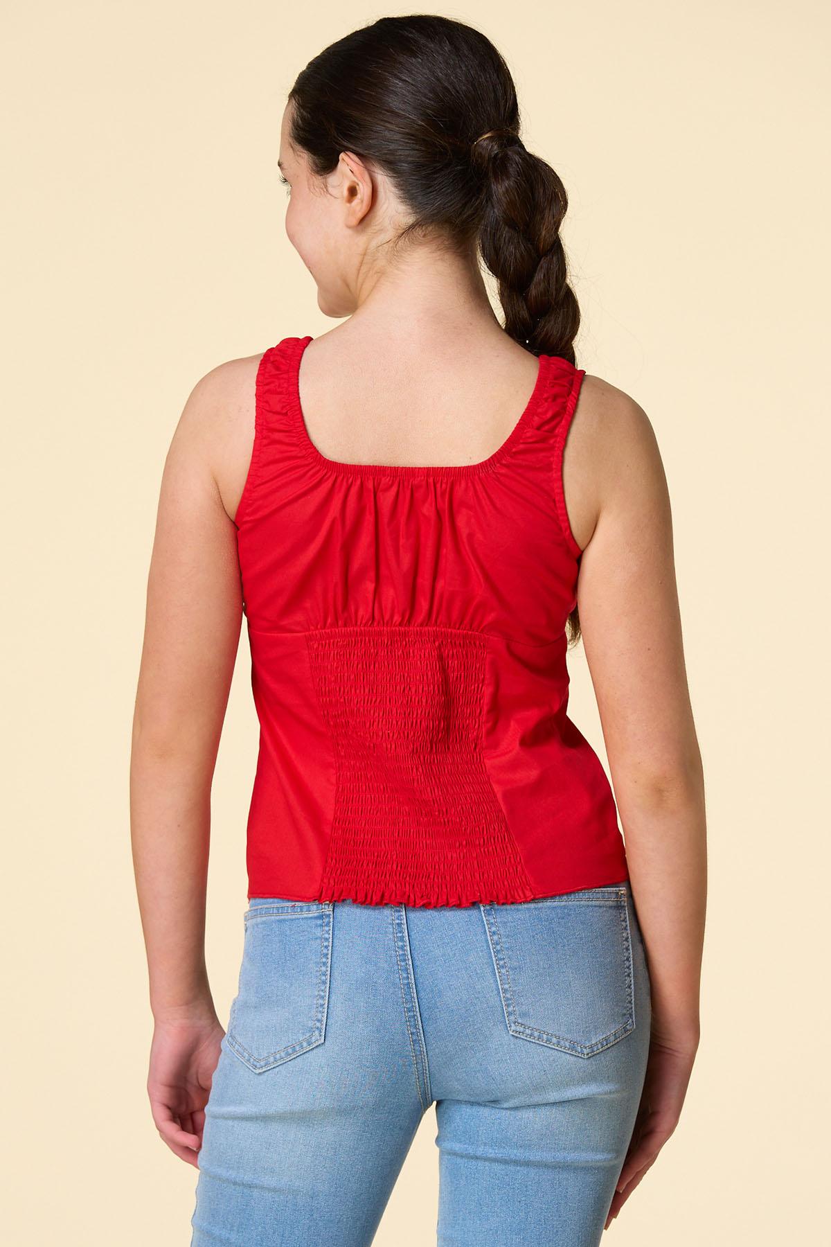 From firework shows to outdoor summer fun, this cute tank is ready when you are. An elastic-tie neckline, smocked back and bright-red hue are the details that make it a perfect pick to wear with your favorite denim go-tos.
