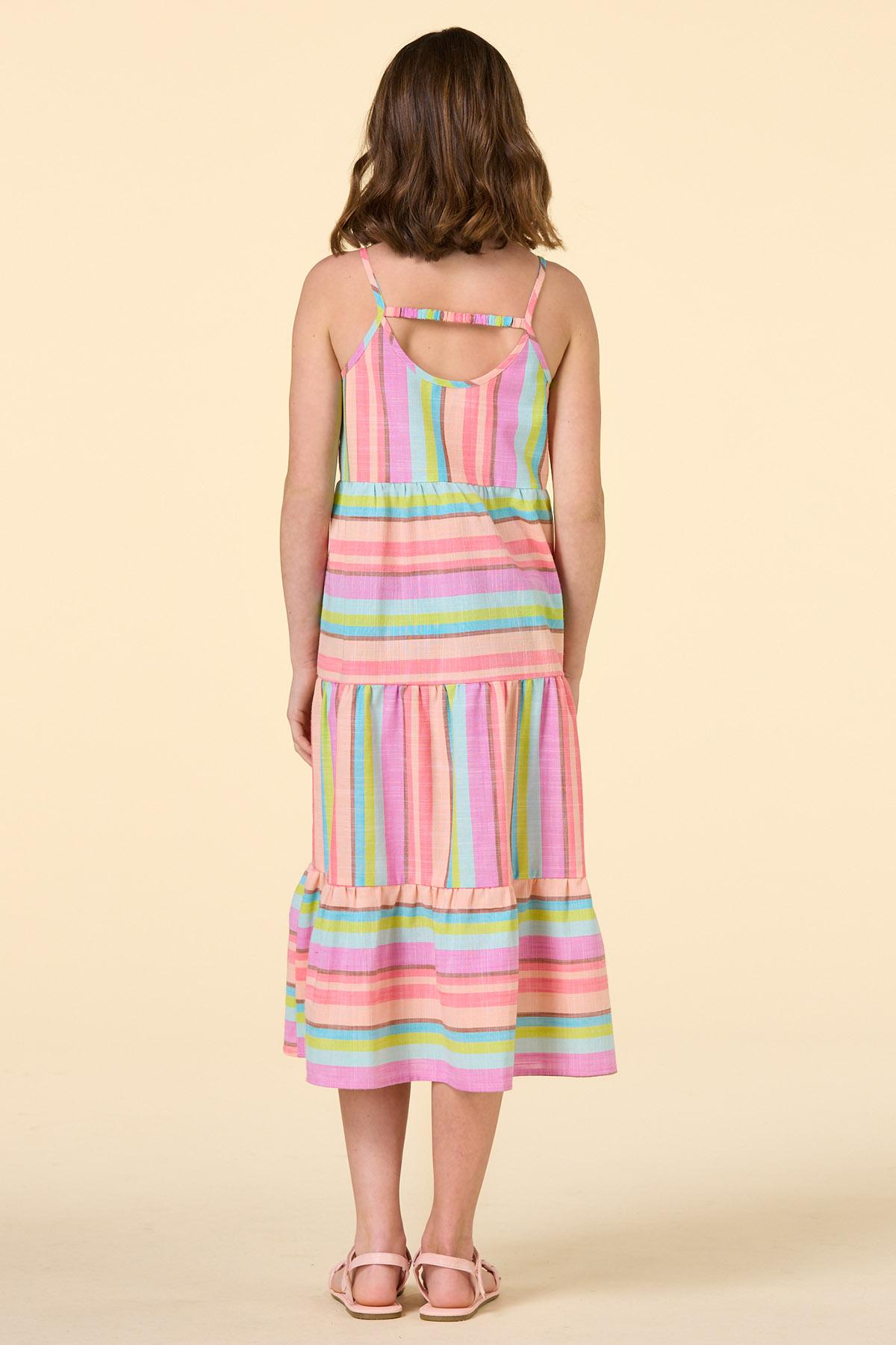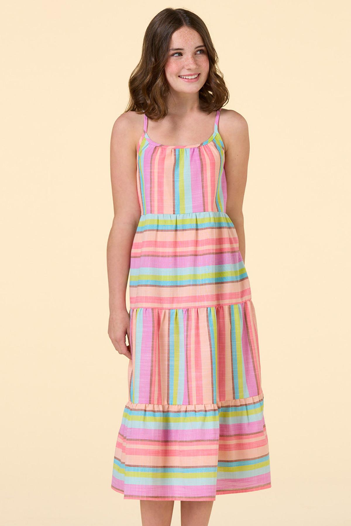 The sunshine will be smiling down on you when you show up wearing this tiered style, featuring a multi-stripe print, the sweetest color palette, a cutout back and relaxed fit – perfect for wearing casual with sneakers or feeling a little fancy with a pair of sandals.