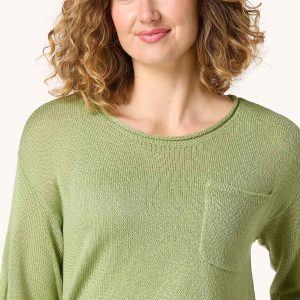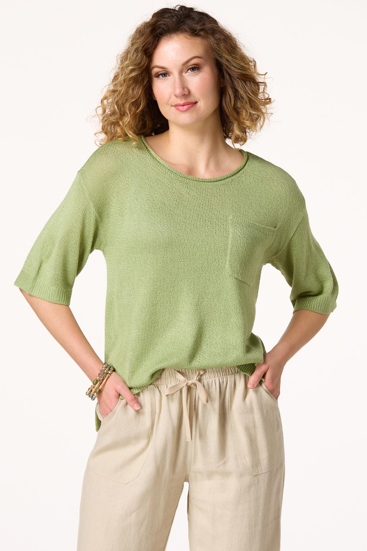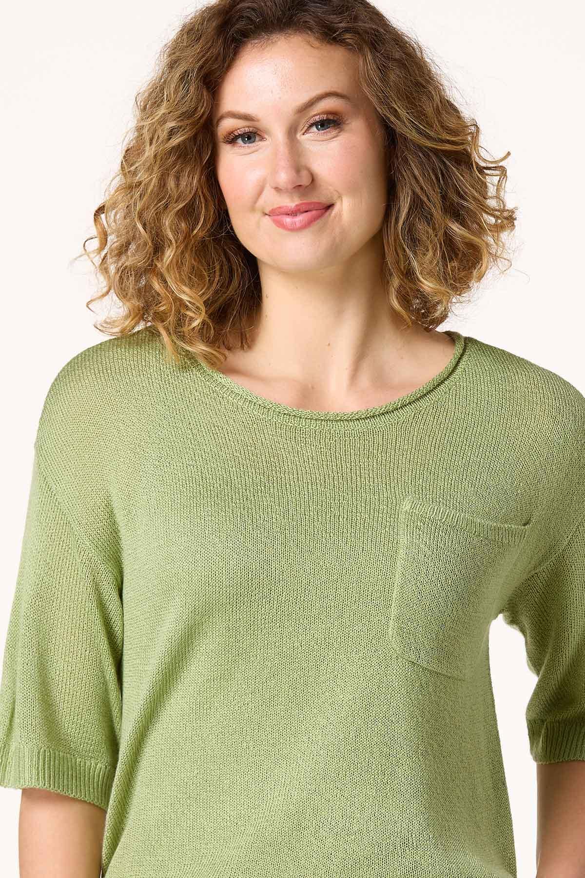 You’ll be crushing the spring chill with this casual sweater, featuring a rolled-scoop neckline, drop shoulder design, green hue, front pocket detail and relaxed fit. A pair of jeans or some cute denim shorts are all you need for a low-key look you’ll love.