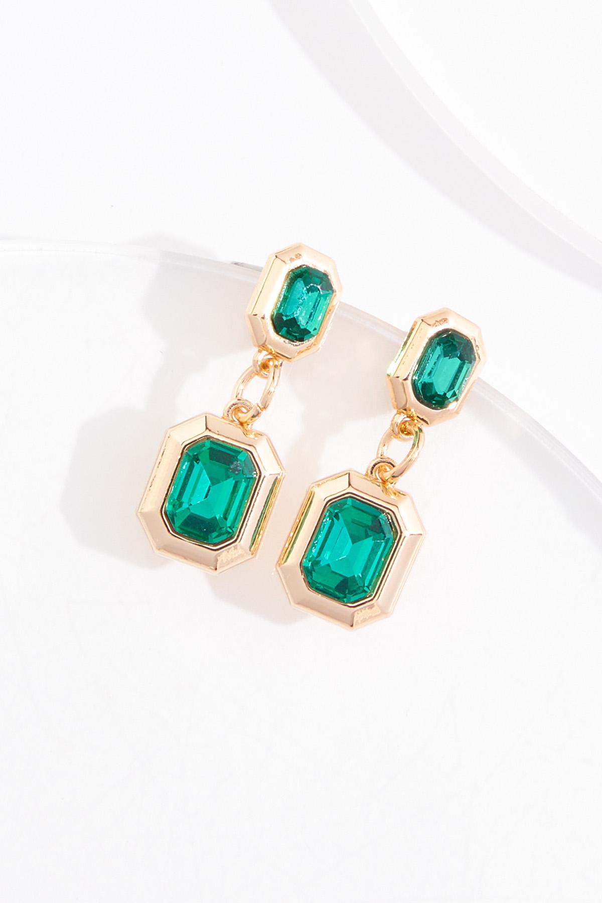 Green Stone Gold Tiered Earrings