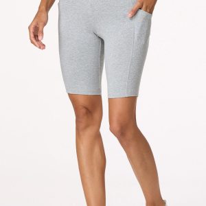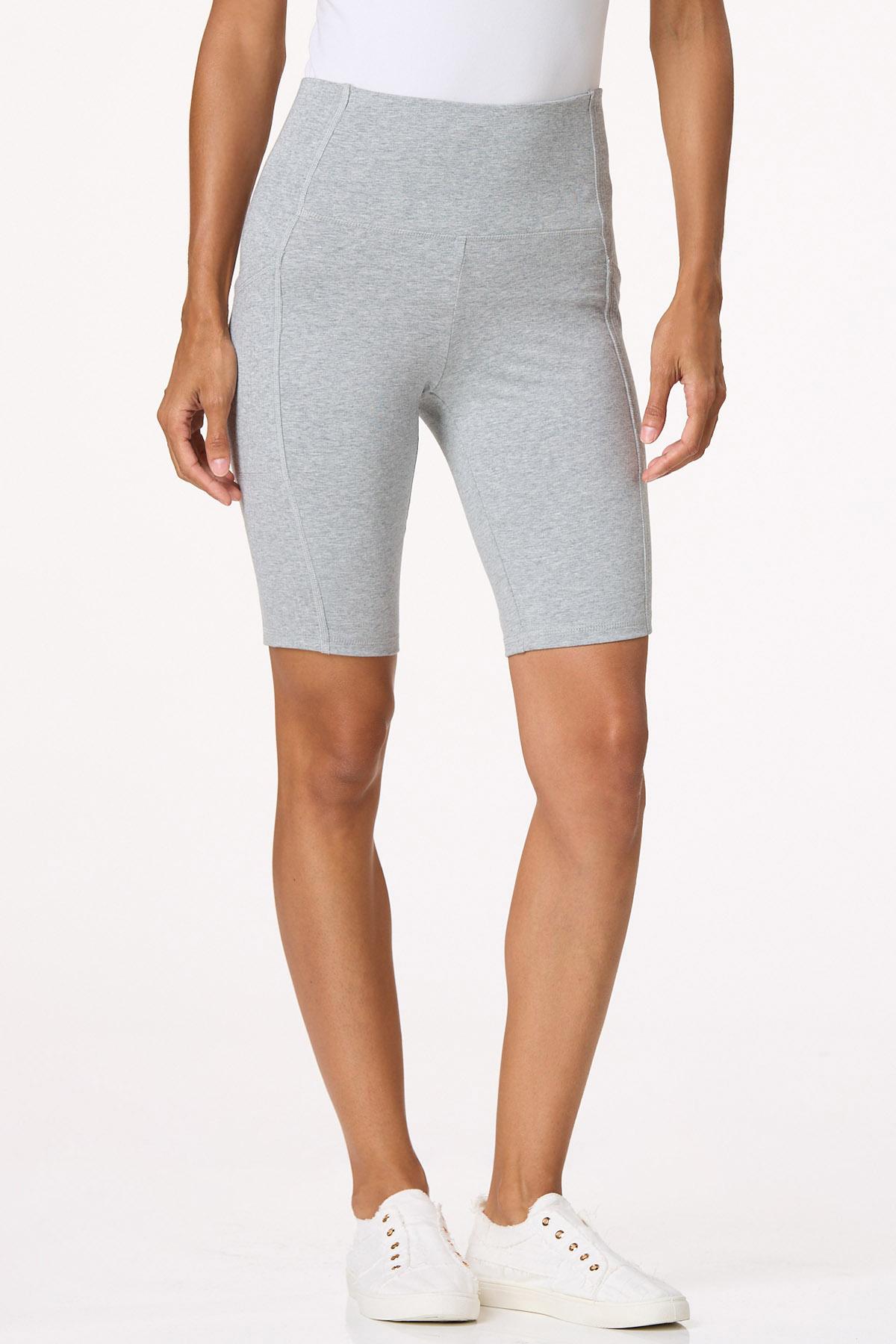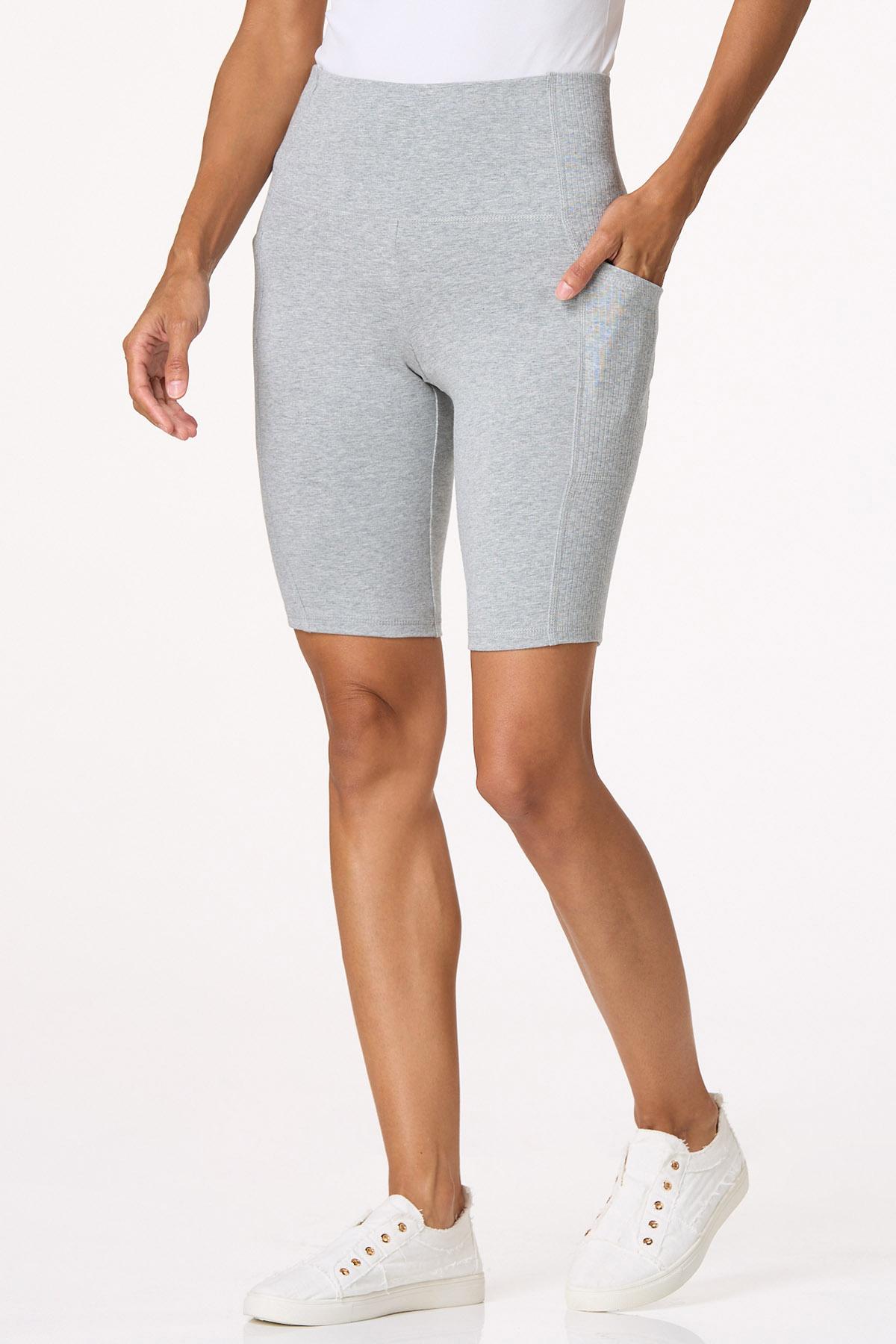 Level up your off-duty style with these heather gray biker shorts. Designed with a stretch fit, ribbed insets, and side panel pockets, they blend comfort and function for an effortlessly cool look.