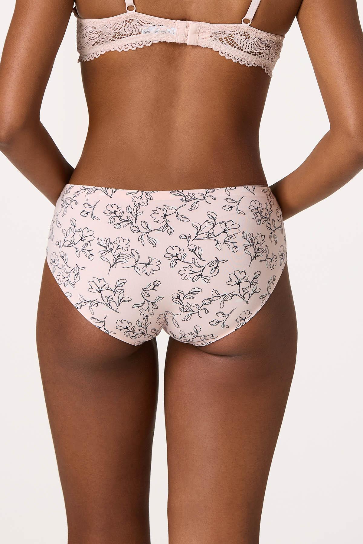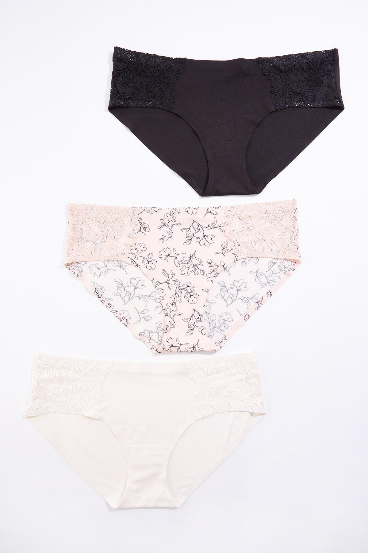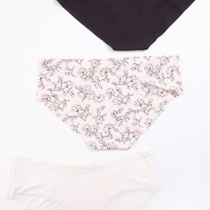 Lace Trim Floral Solid Panty Set